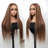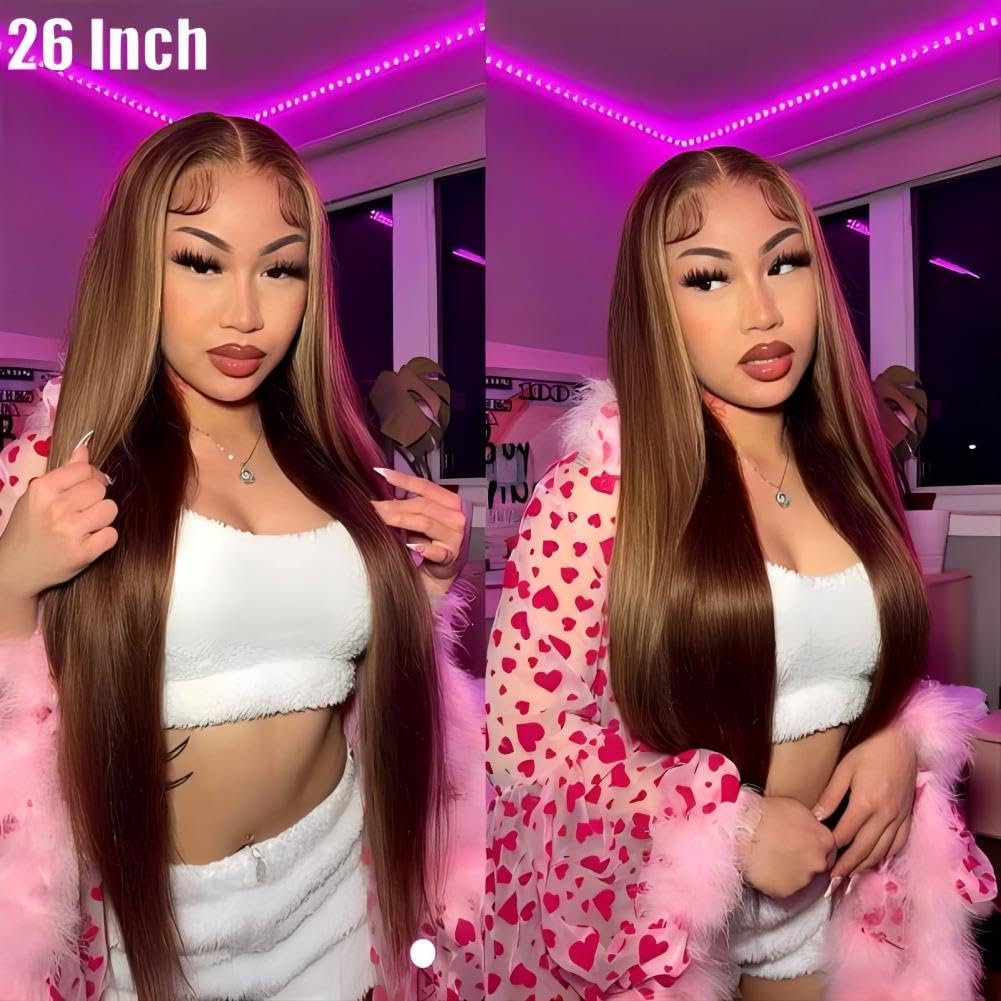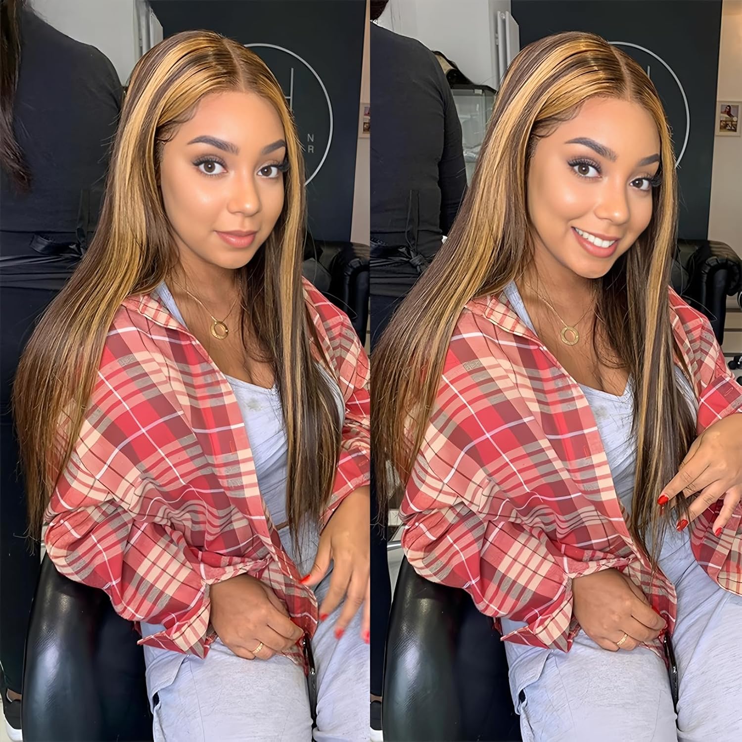 ISEE HAIR M-Cap Straight Wear Go Glueless Wig Human Hair Pre Plucked Pre Cut 9×6 HD Lace Pre Bleached Tiny Knots Human Hair Wigs For Women (Highlight 4/27, 18 Inch)