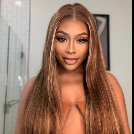 ISEE HAIR M-Cap Straight Wear Go Glueless Wig Human Hair Pre Plucked Pre Cut 9×6 HD Lace Pre Bleached Tiny Knots Human Hair Wigs For Women (Highlight 4/27, 18 Inch)