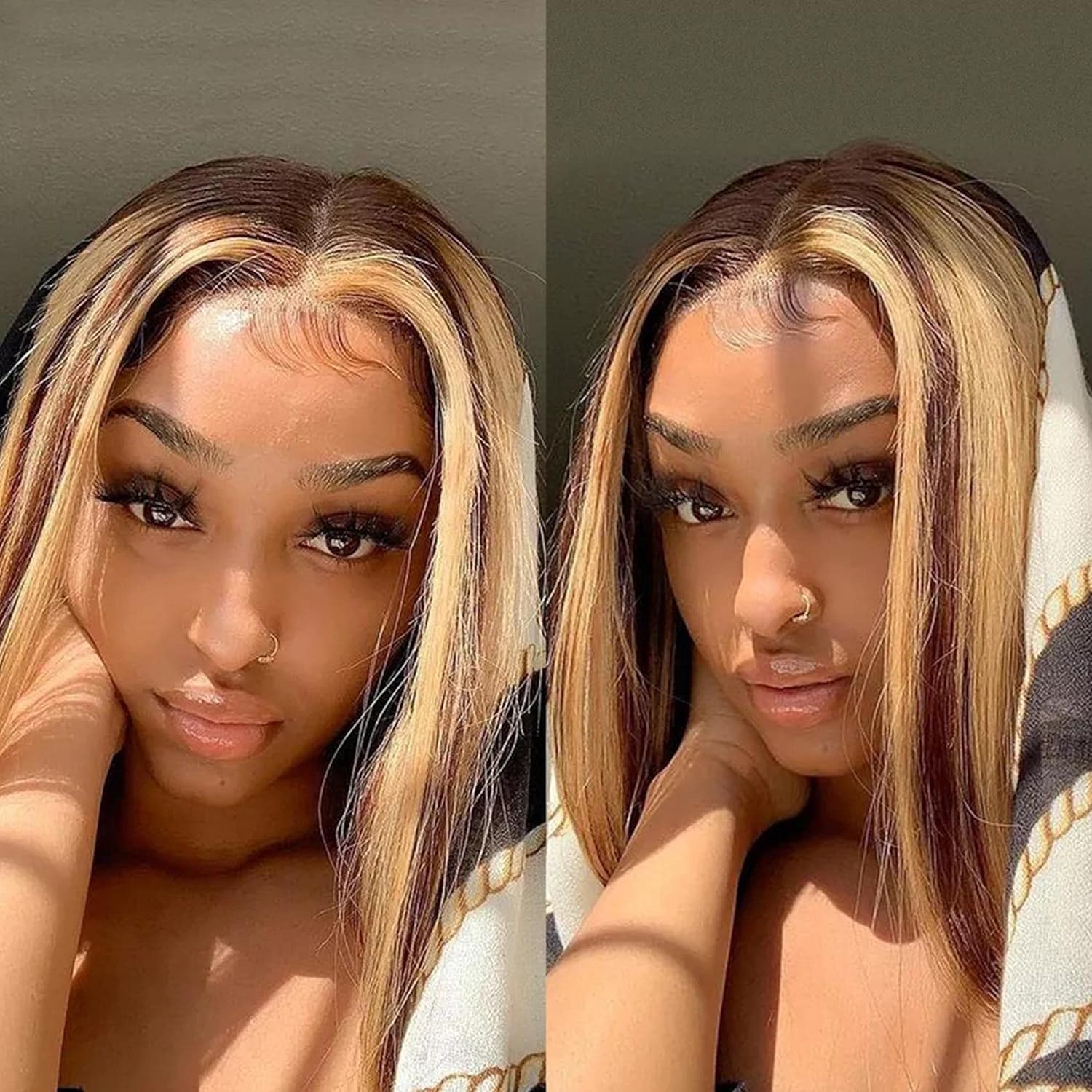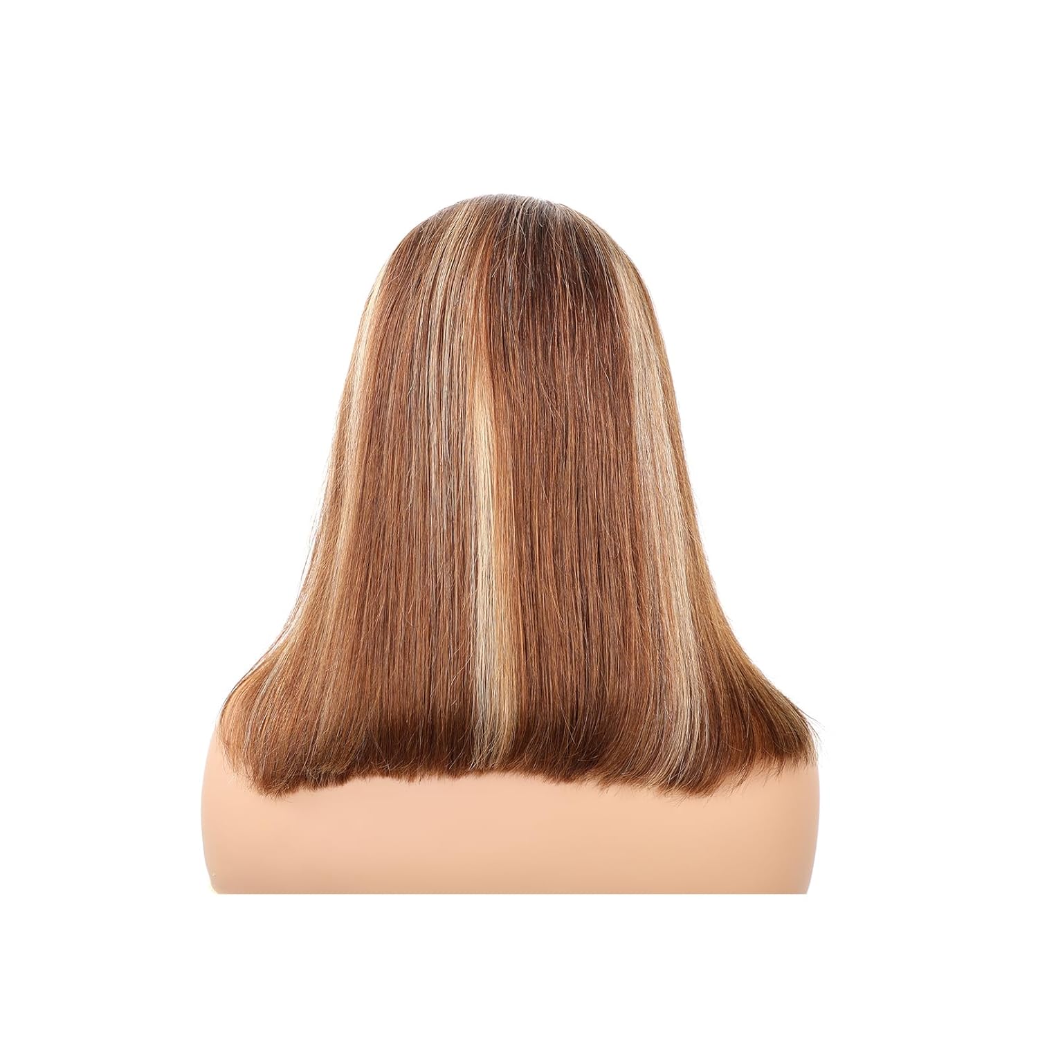Made from 100% virgin human hair, the Wear and Go Glueless Wig features a short straight glueless highlight bob style with a density of 180%, providing a full and thick look. Available in a 4/27 brown highlight color, this wig is perfect for adding a touch of color to your style.