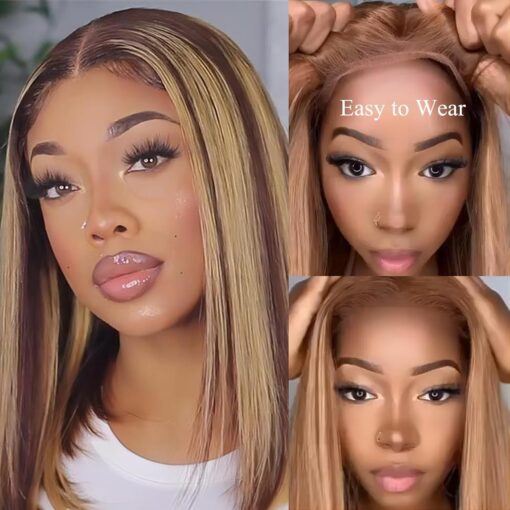 Made from 100% virgin human hair, the Wear and Go Glueless Wig features a short straight glueless highlight bob style with a density of 180%, providing a full and thick look. Available in a 4/27 brown highlight color, this wig is perfect for adding a touch of color to your style.