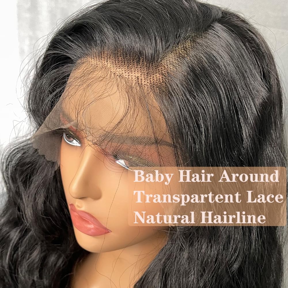 Lace Front Wig Pre Plucked Ready to Wear 13×6 HD Glueless Body Wave Lace Front Wig for Women Natural Looking Synthetic Heat Resistant Fiber Wavy Lace Wig Natural Black (26 Inch)