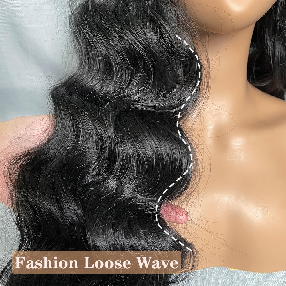 Fraud Blocker Lace Front Wig Pre Plucked Ready to Wear 13×6 HD Glueless Body Wave Lace Front Wig for Women Natural Looking Synthetic Heat Resistant Fiber Wavy Lace Wig Natural Black (26 Inch) | Wigsretail44.com