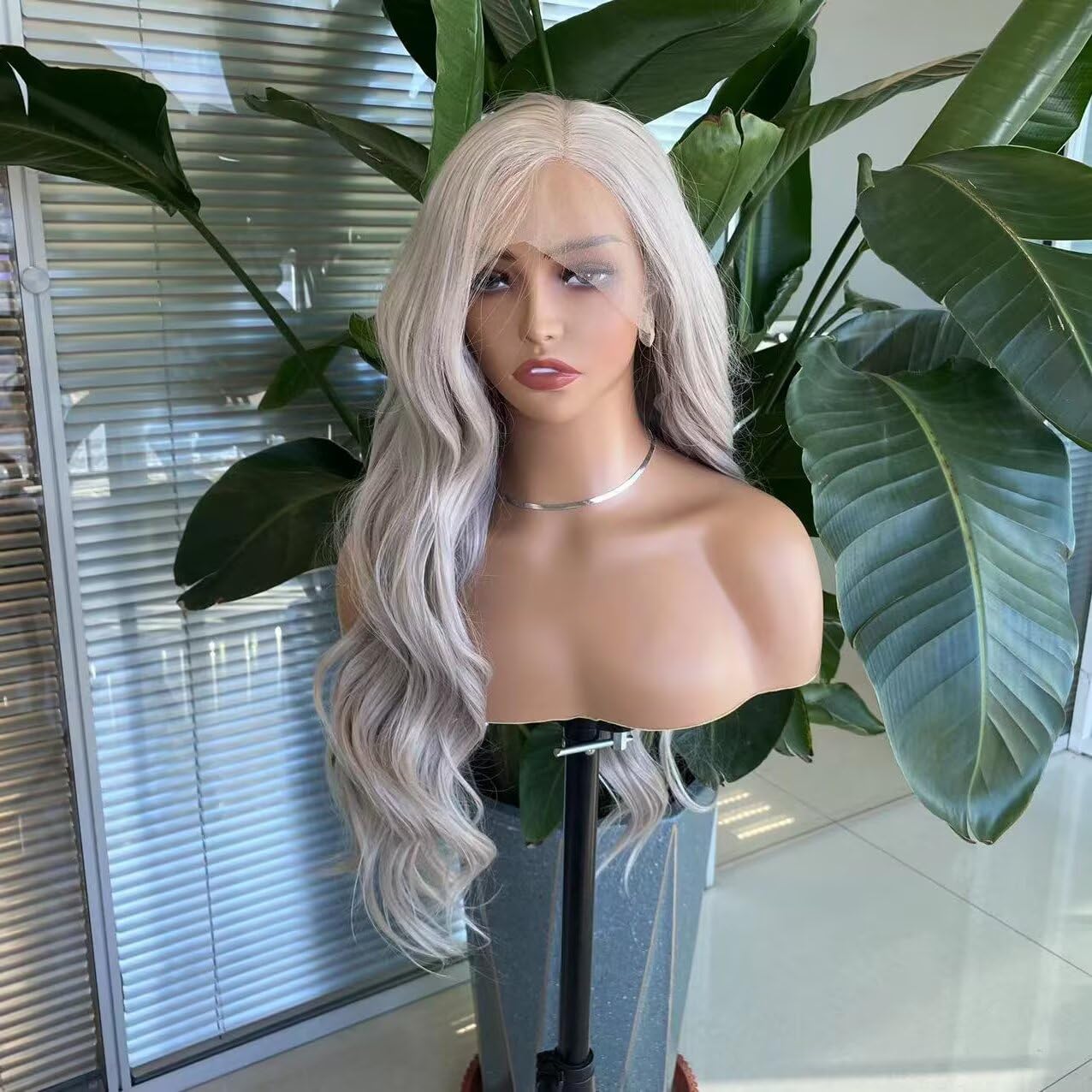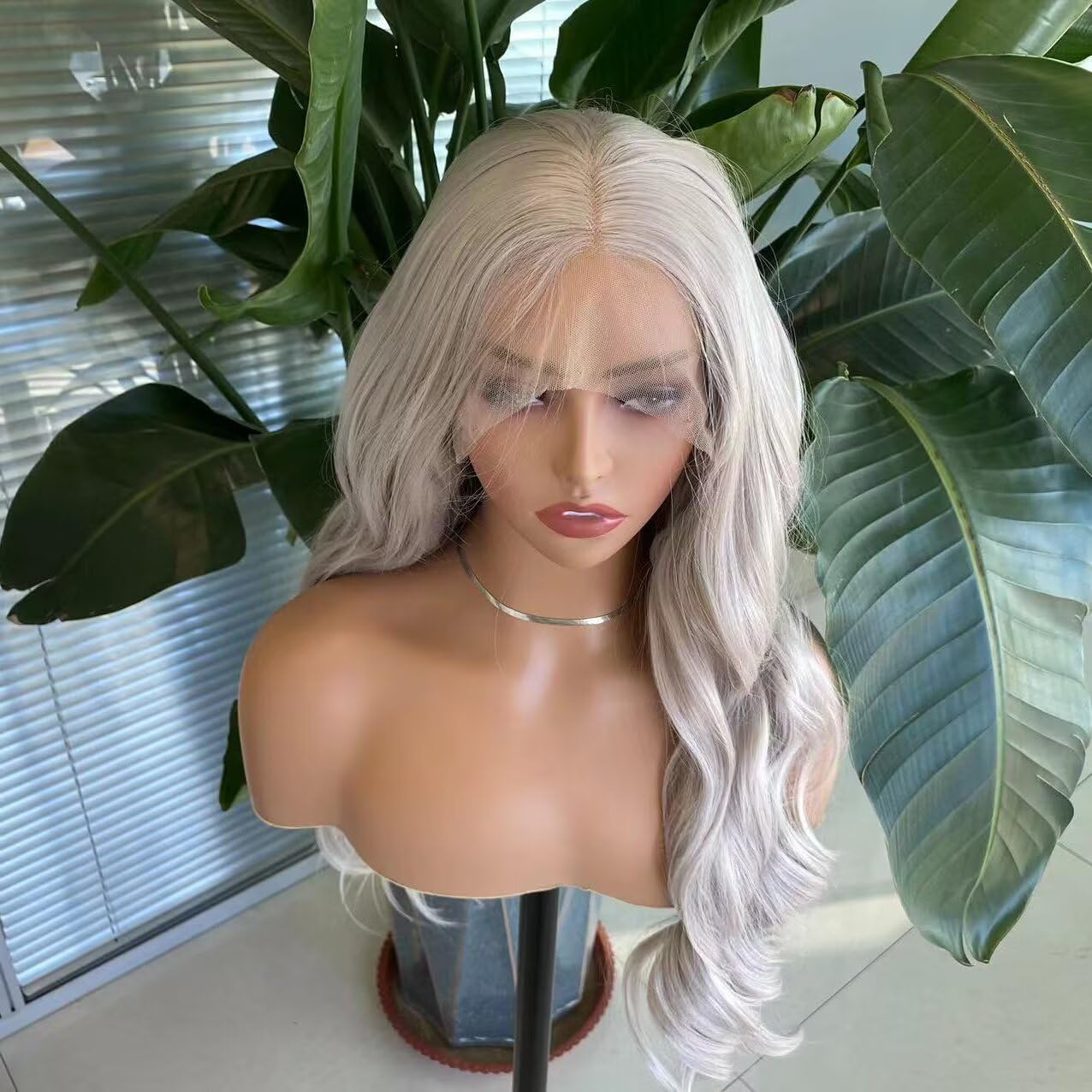 Long Gray Wig With Natural Wave Glueless Lace Front Synthetic Hair Wigs Review