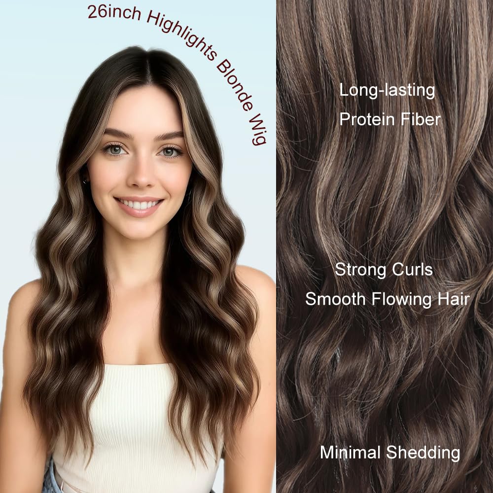 – Long Wavy Ombre Brown Blonde Highlights Wig