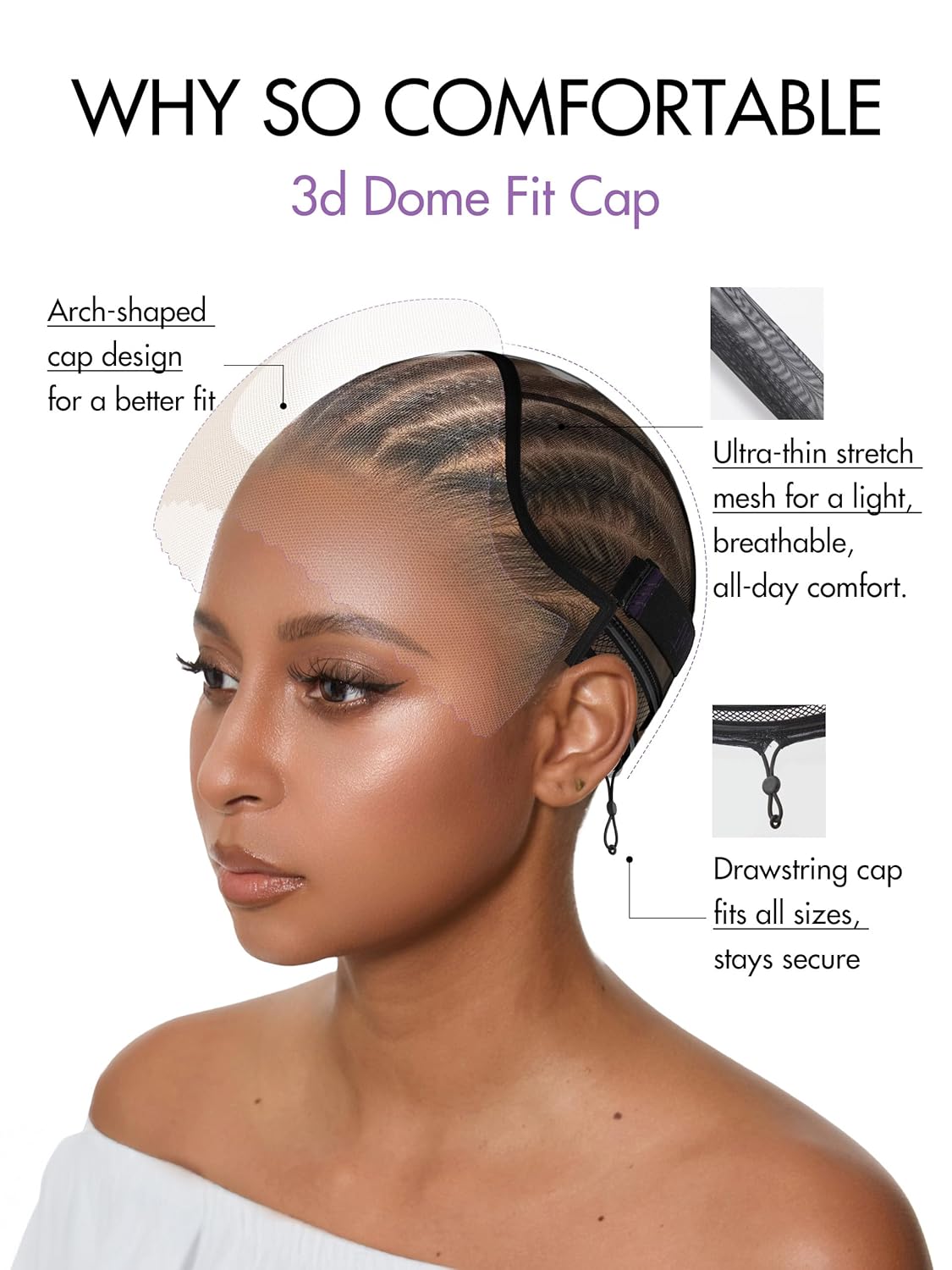 - Adjustable drawstring cap for a secure and comfortable fit