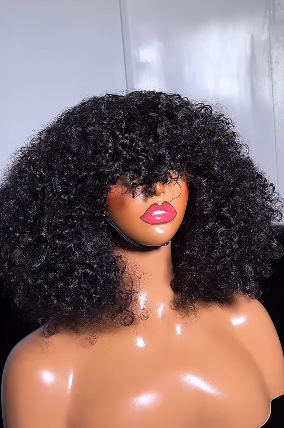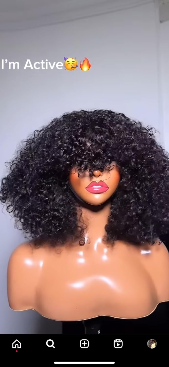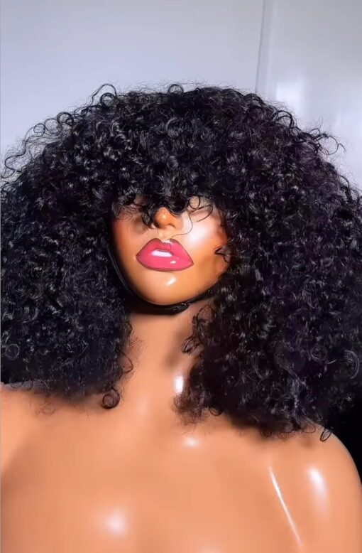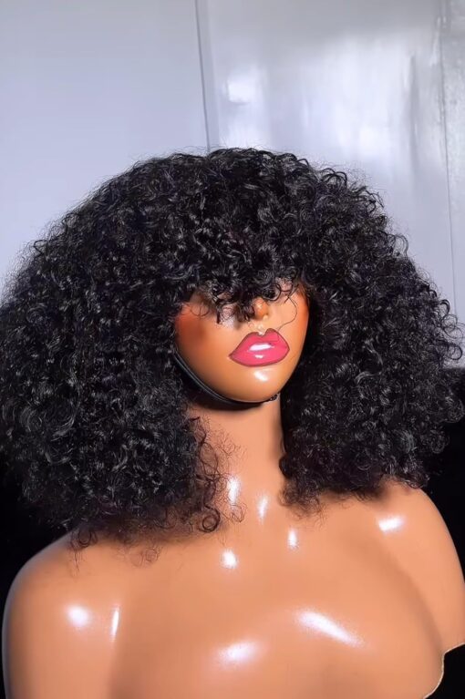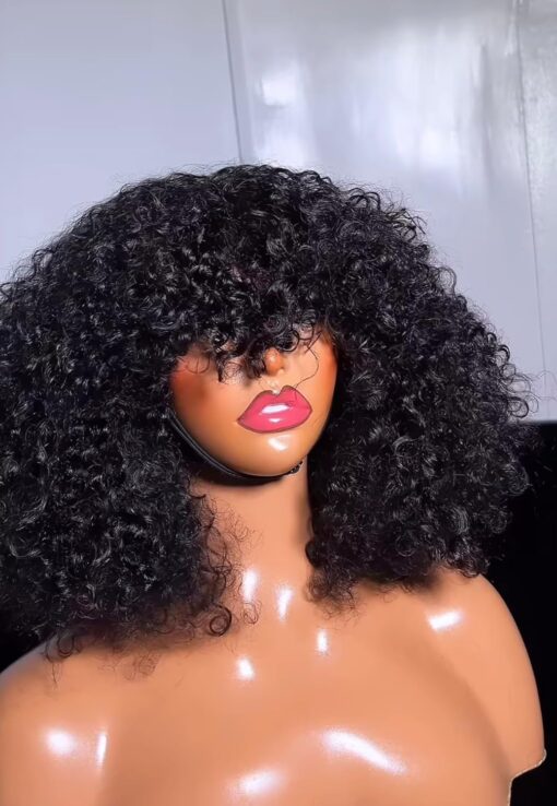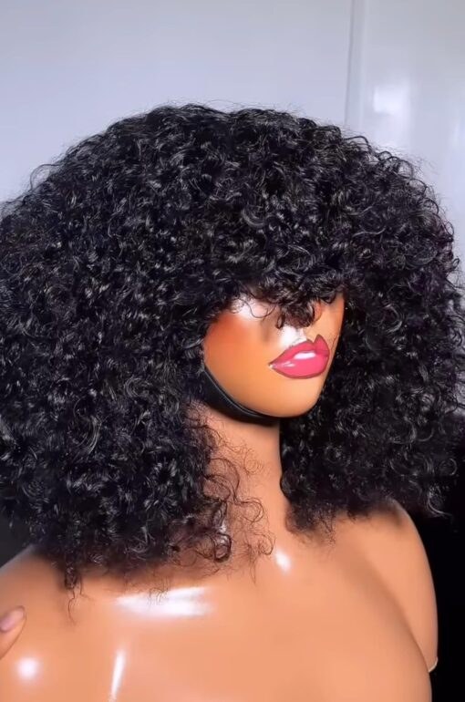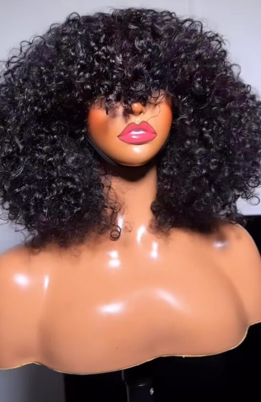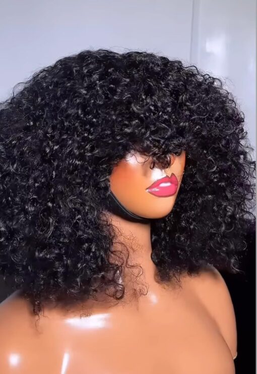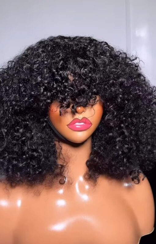 Fraud Blocker Luxury Coily Curly Fringe Bang Wig, 100% Virgin Human Hair, 12 inches, 250% Density, No Lace, Glueless, Pre-styled, Can be Dyed, Bleached, Permed, Has Elastic Band and Adjustable Straps | Wigsretail44.com