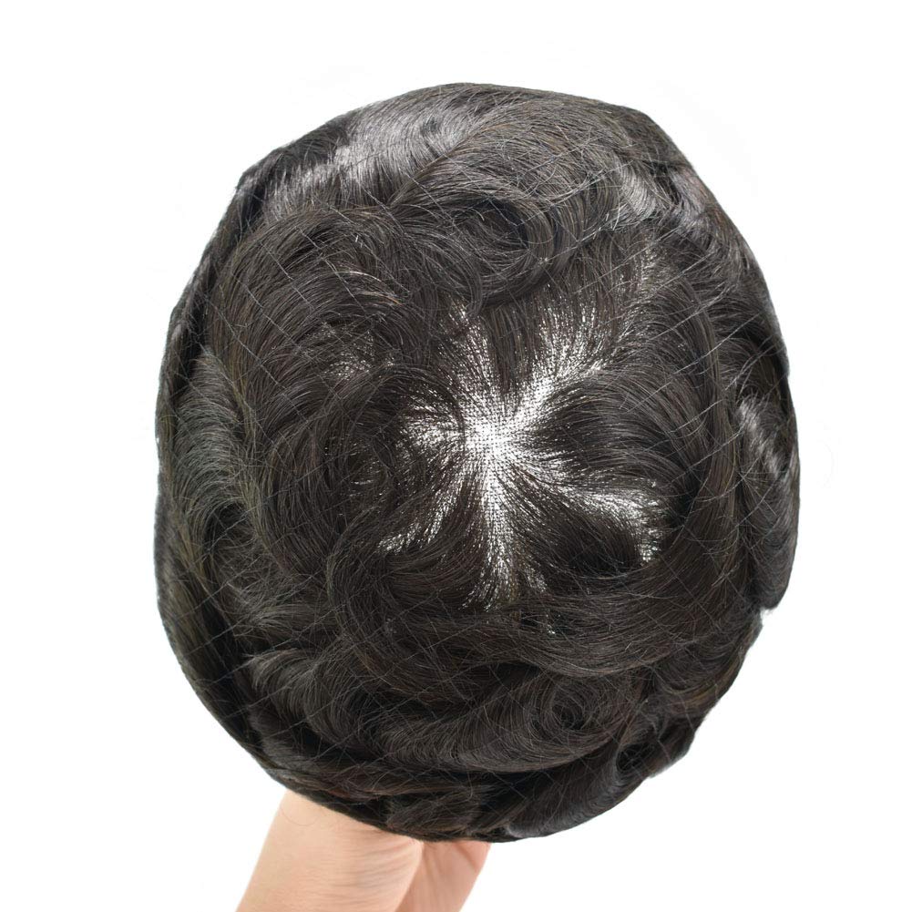 Fraud Blocker LYRICAL HAIR Undetectable Full French Lace Mens Toupee Breathable All Lace Human Hair Piece For Men Bleached Knot Full Lace Wig Natural Hairline Men Replacement System (8X10″, 1B# OFF BLACK-100% LIGHT TO MEDIUM DENSITY) | Wigsretail44.com