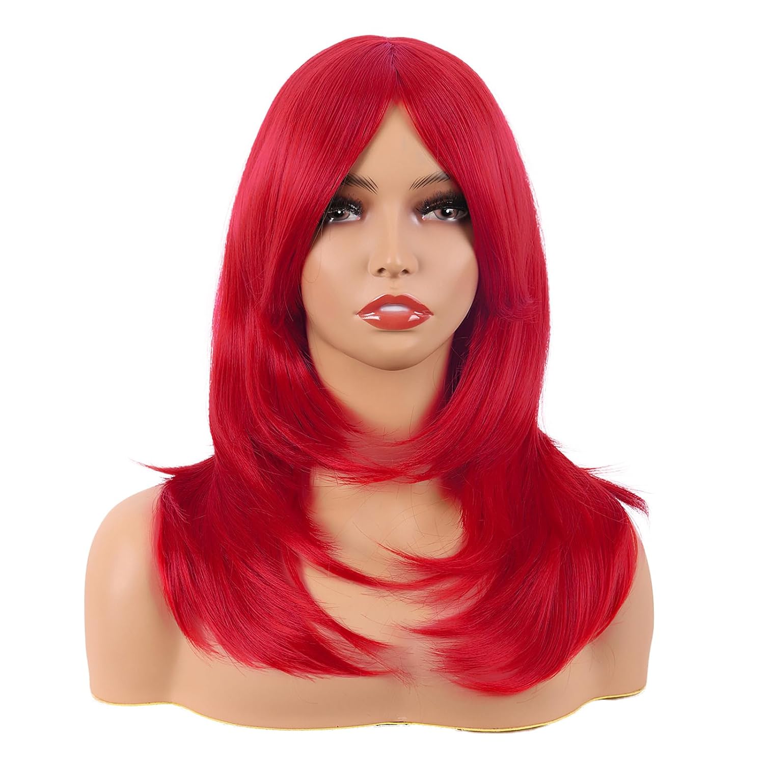 Fraud Blocker MapofBeauty 20 Inch/50 cm Long Layered With Bangs Straight Synthetic fiber Shoulder Length Hair for Daily Use or Party Wig (bright Red) | Wigsretail44.com