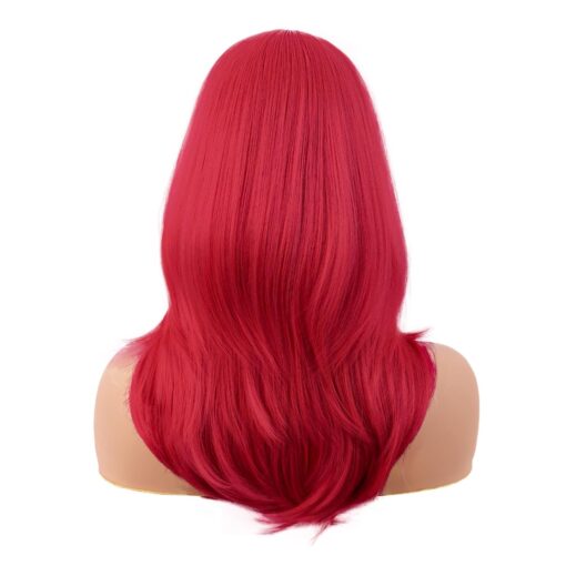 MapofBeauty 20 Inch/50 cm Long Layered With Bangs Straight Synthetic fiber Shoulder Length Hair for Daily Use or Party Wig (bright Red)