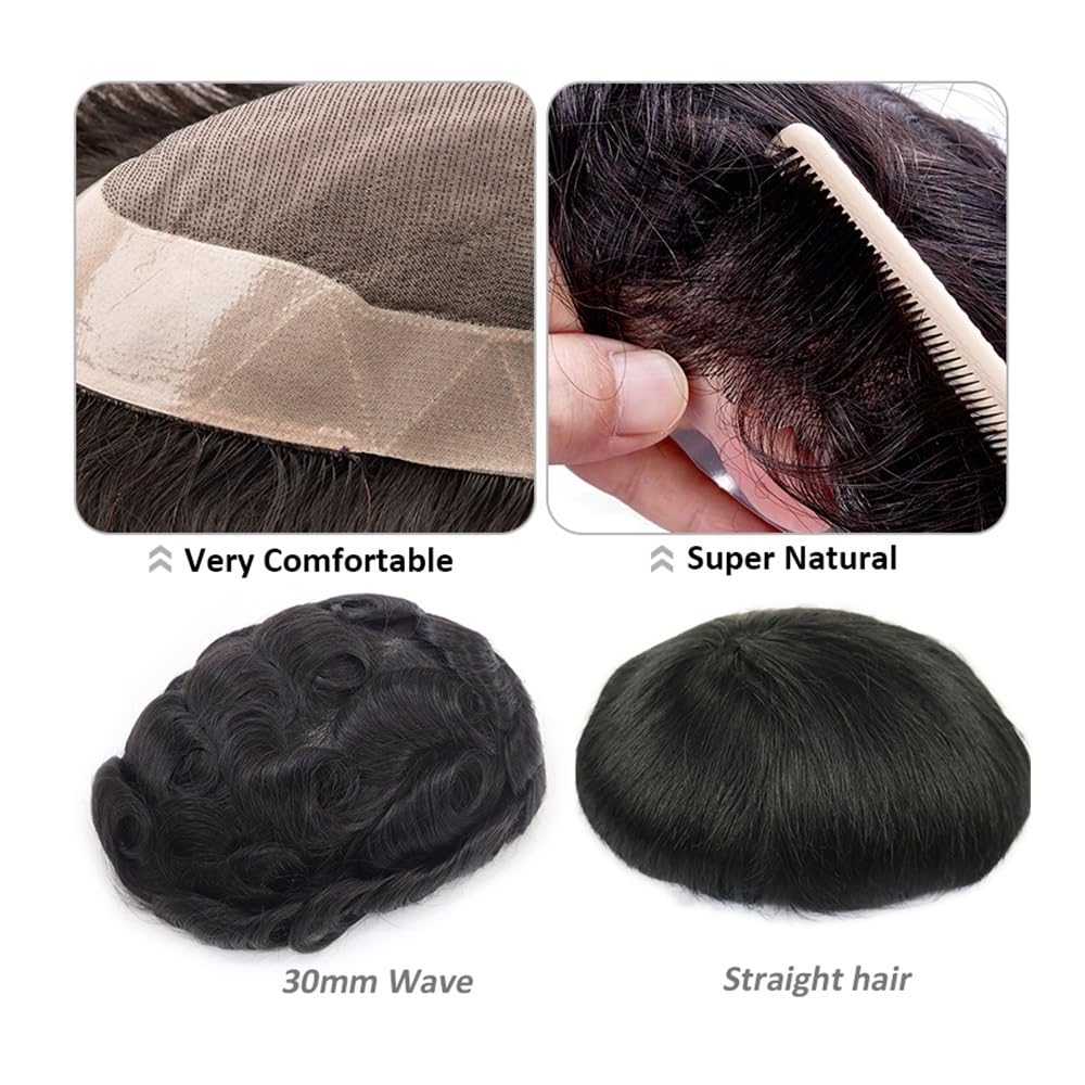 Fraud Blocker Mens Toupee Men Hair Toupee Mono NPU Human Hair Wig Indian Hair System Straight Wave Hairpiece Men’s Capillary Prothesis Hairline Wigs(Black,6×8) | Wigsretail44.com