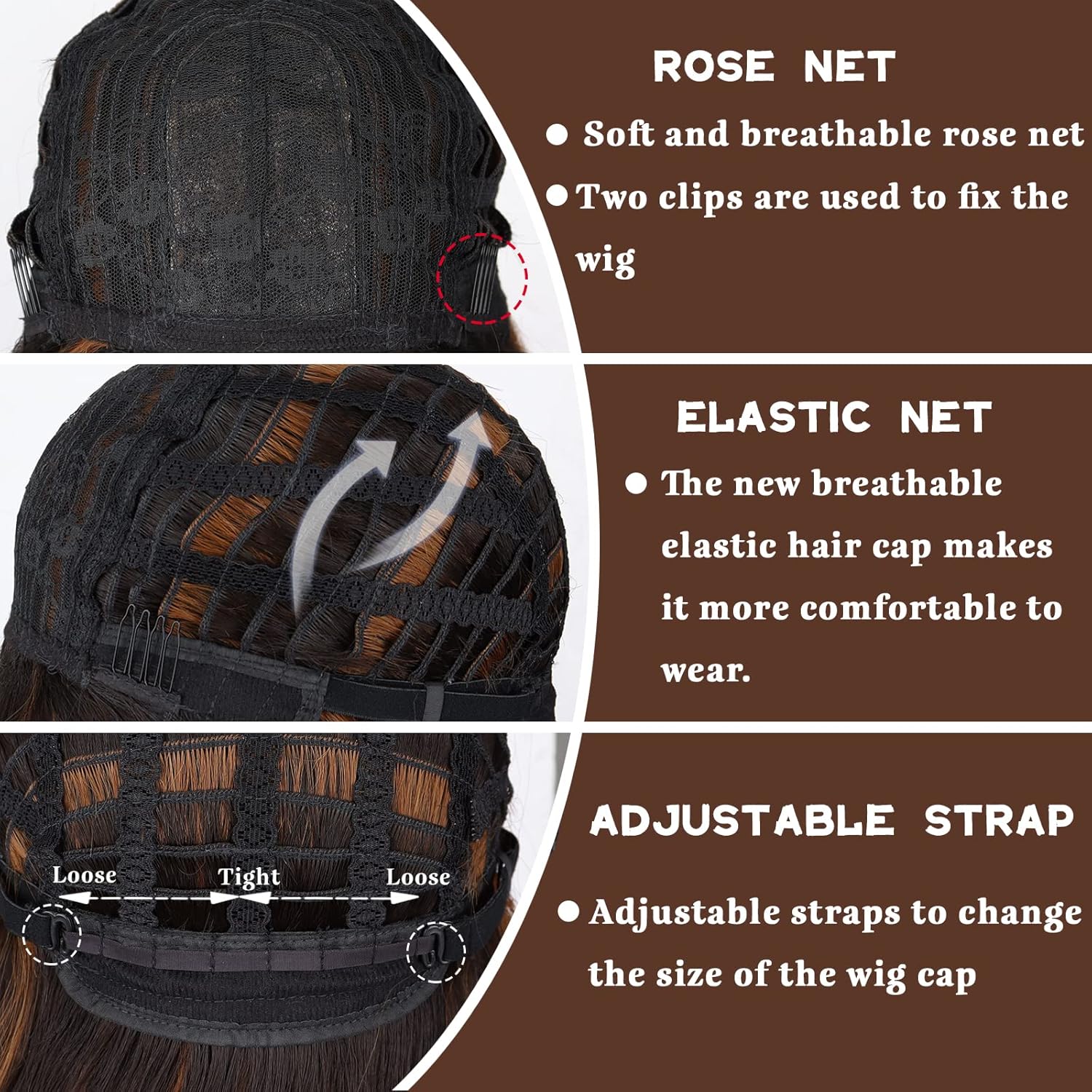 The Long Wavy Brown Highlight Wig with Bangs exceeded my expectations in terms of quality and performance. The synthetic fiber feels incredibly soft and looks very natural when worn. I was able to style the wig to my liking, and the adjustable straps inside the cap ensured a secure and comfortable fit. While there was some shedding, it was minimal and did not detract from the overall appearance of the wig.