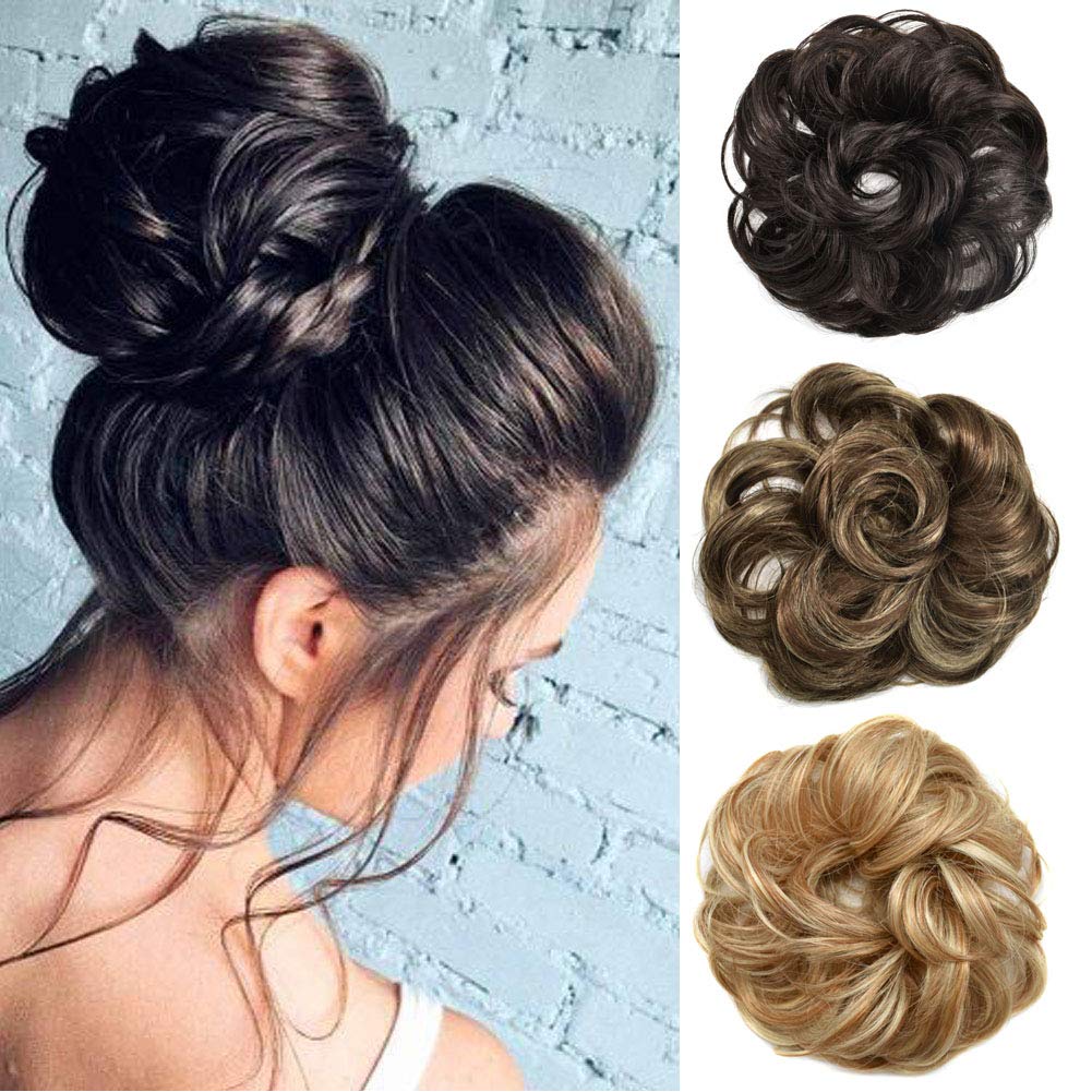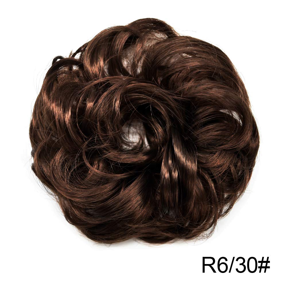 Fraud Blocker Messy Rose Bun Hair Piece Synthetic Hair Scrunchies Extension Curly Wavy With Elastic Rubber Band Ponytail Hair Extensions Tousled Updo Hairpieces for Women Girls(R6/30# Dark Brown & Light Auburn) | Wigsretail44.com