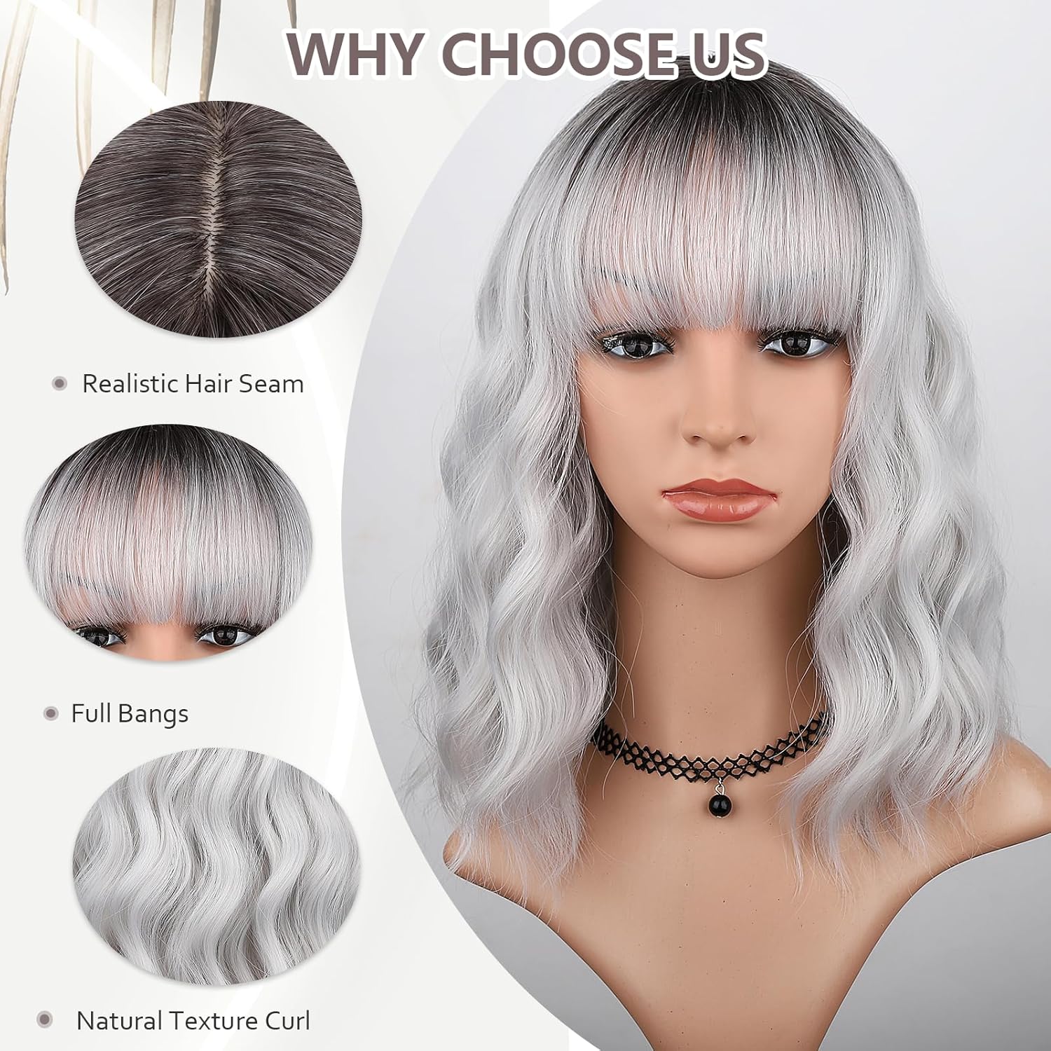 Looking to switch up your look with a trendy and modern hairstyle? Look no further than the Fashion Silver Wig! This silver gray bob wig with full bangs and distinctive waves is the perfect way to add a touch of edgy flair to your style.