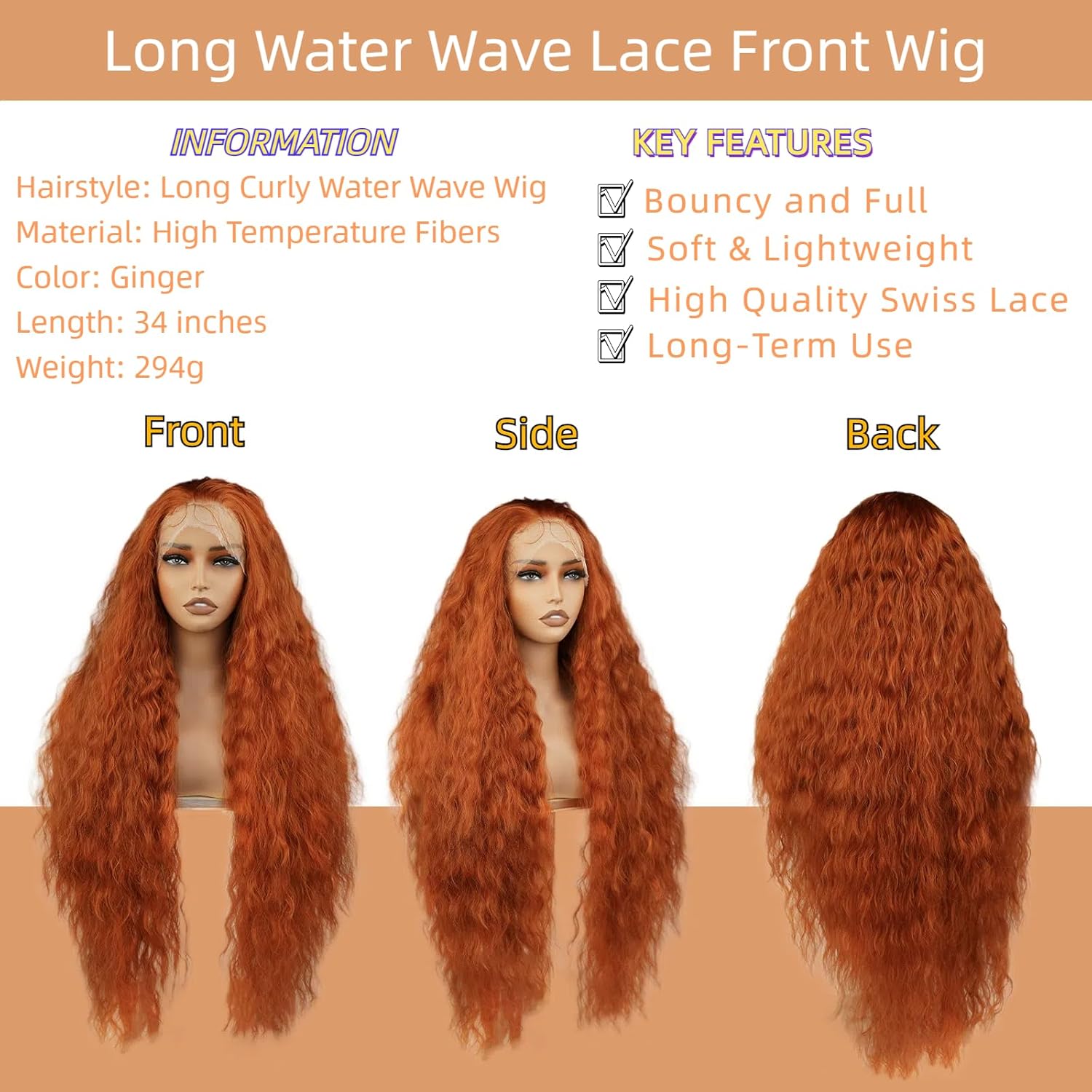 The ginger water wave lace front wig by MISS FANCY is a high-quality product that offers a natural look and feel. The 34-inch long wig is super soft and light, making it comfortable to wear for extended periods. The use of premium high temperature fibers gives the wig a natural luster and texture that closely resembles human hair. The transparent lace front is invisible and fits all skin tones seamlessly, while the adjustable straps and combs inside the wig make it easy to wear and secure in place.