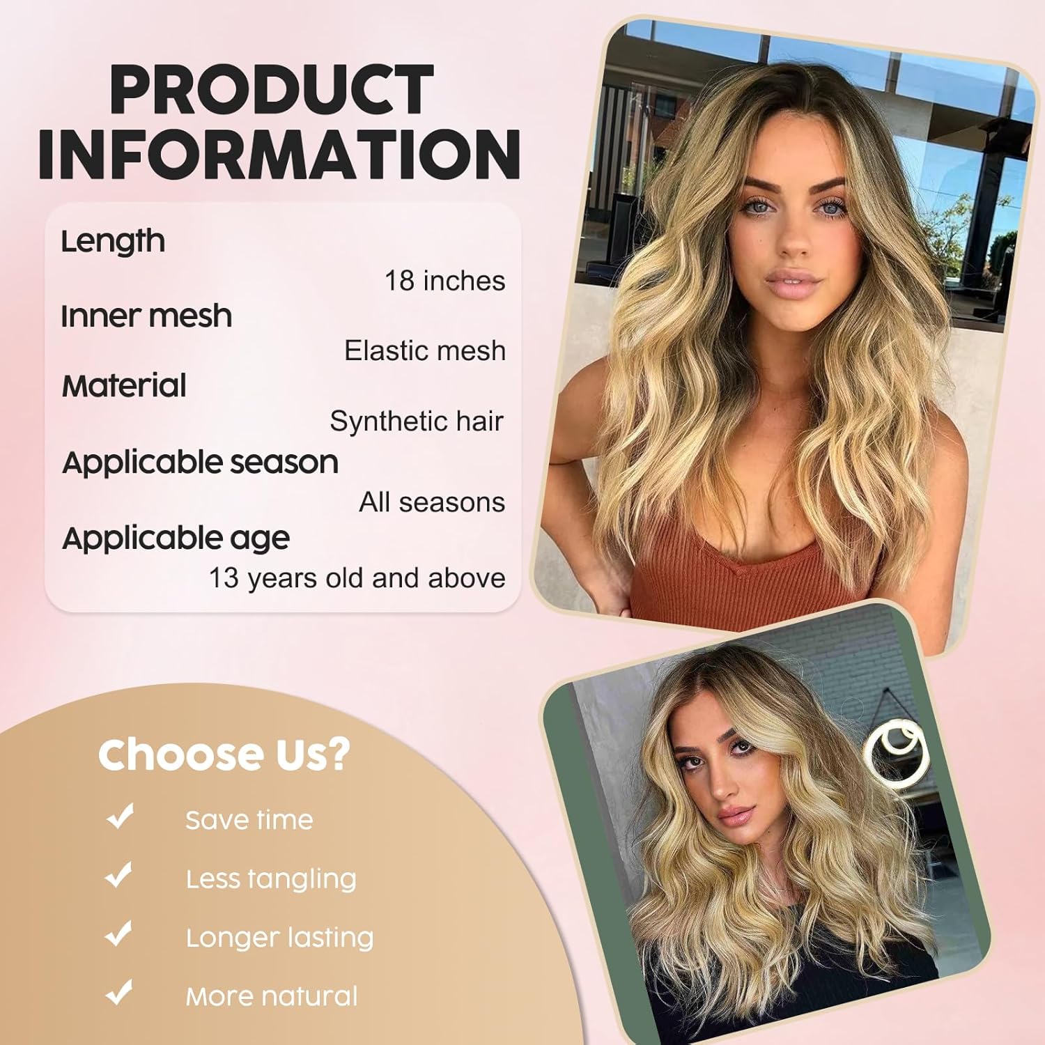 - Classic wavy texture that can be styled with hot tools
