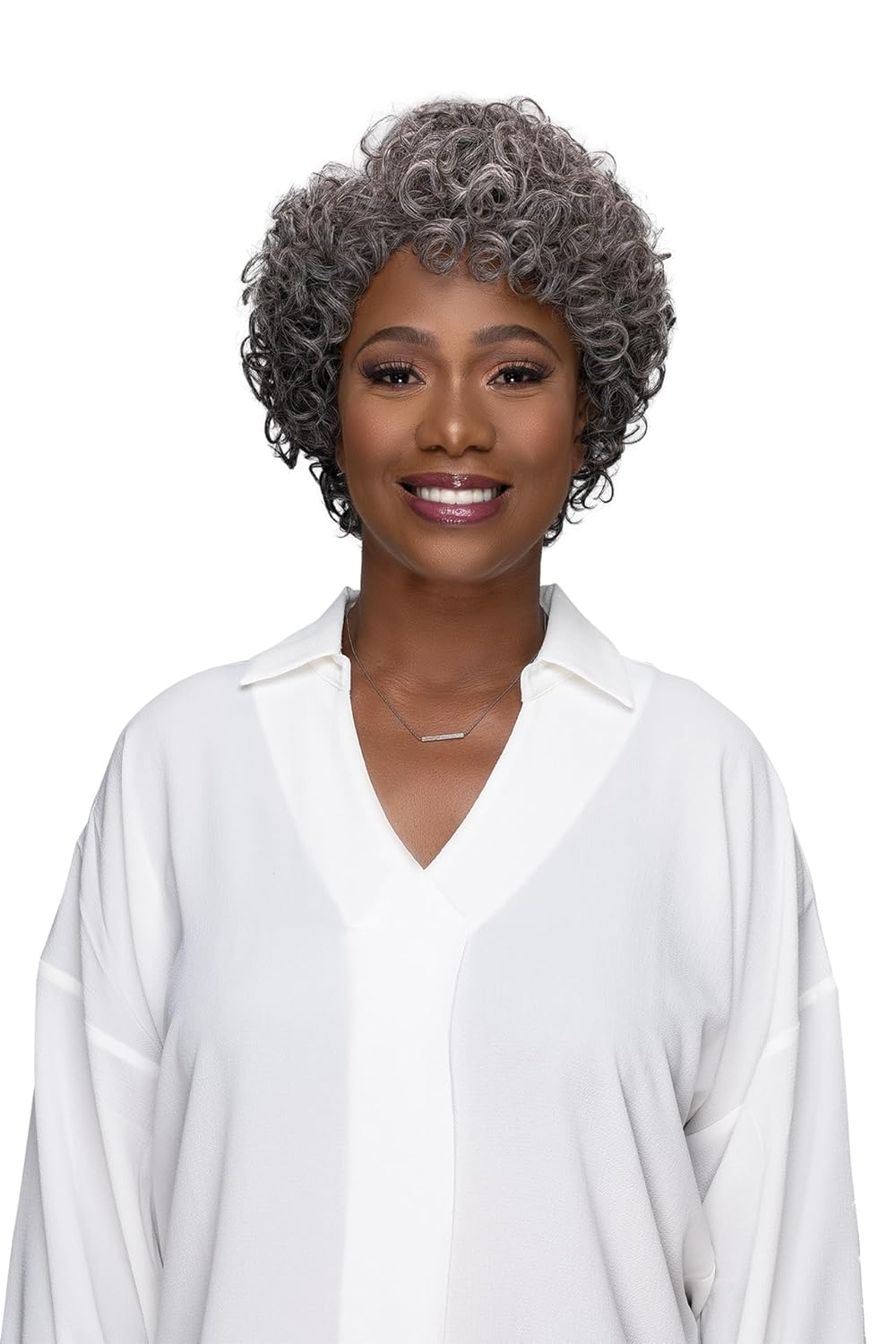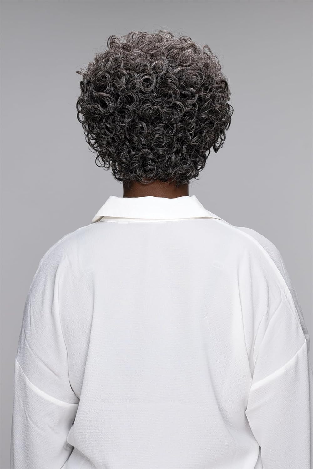 Fraud Blocker Ms.Granny Posy Wig, Hair type 3b curl, Medium boycut style (URBAN GRAY) | Wigsretail44.com