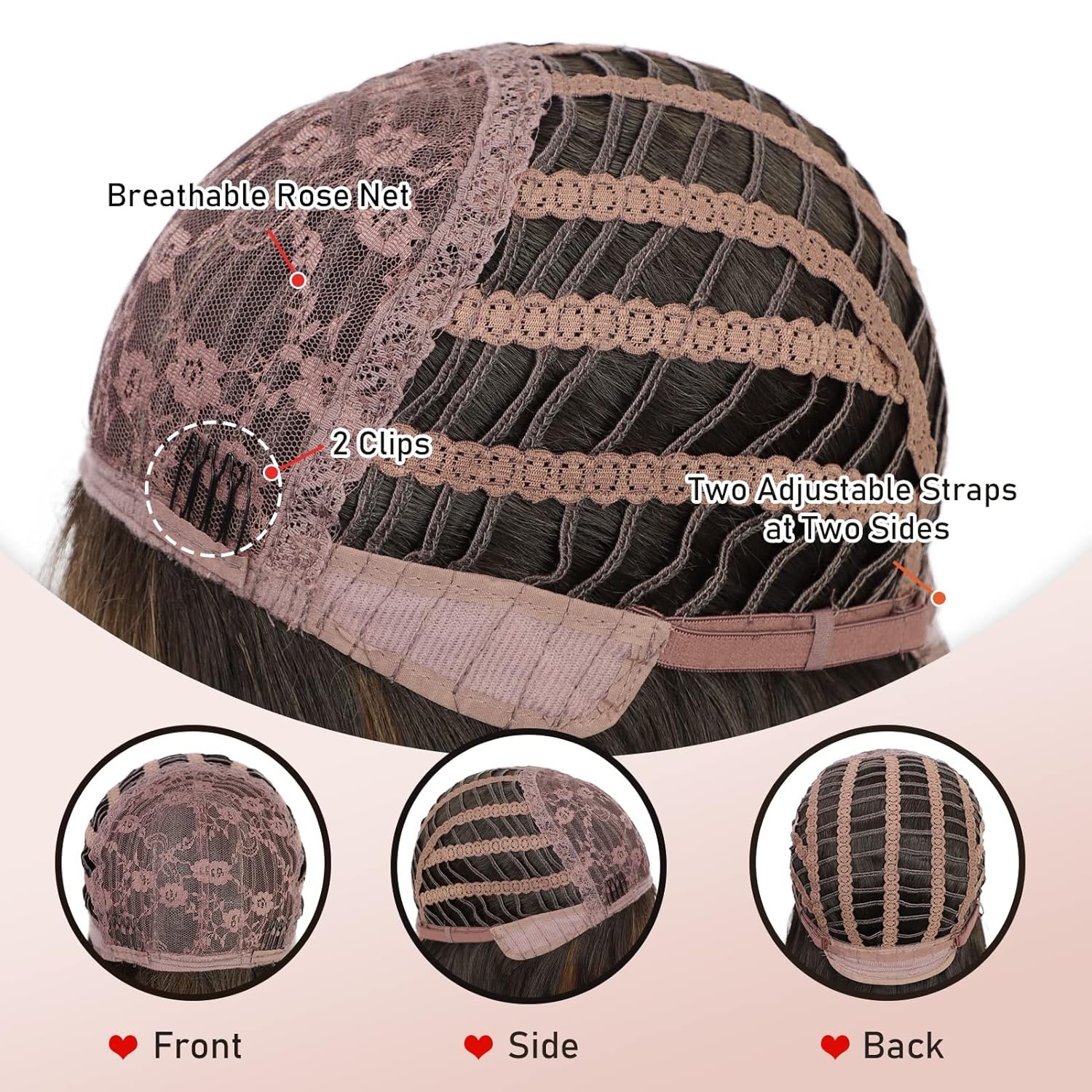 - Wig Style: The wig features a layered wave with bangs in a stunning light brown shade. Its natural curvature and texture make it easy to style and maintain.