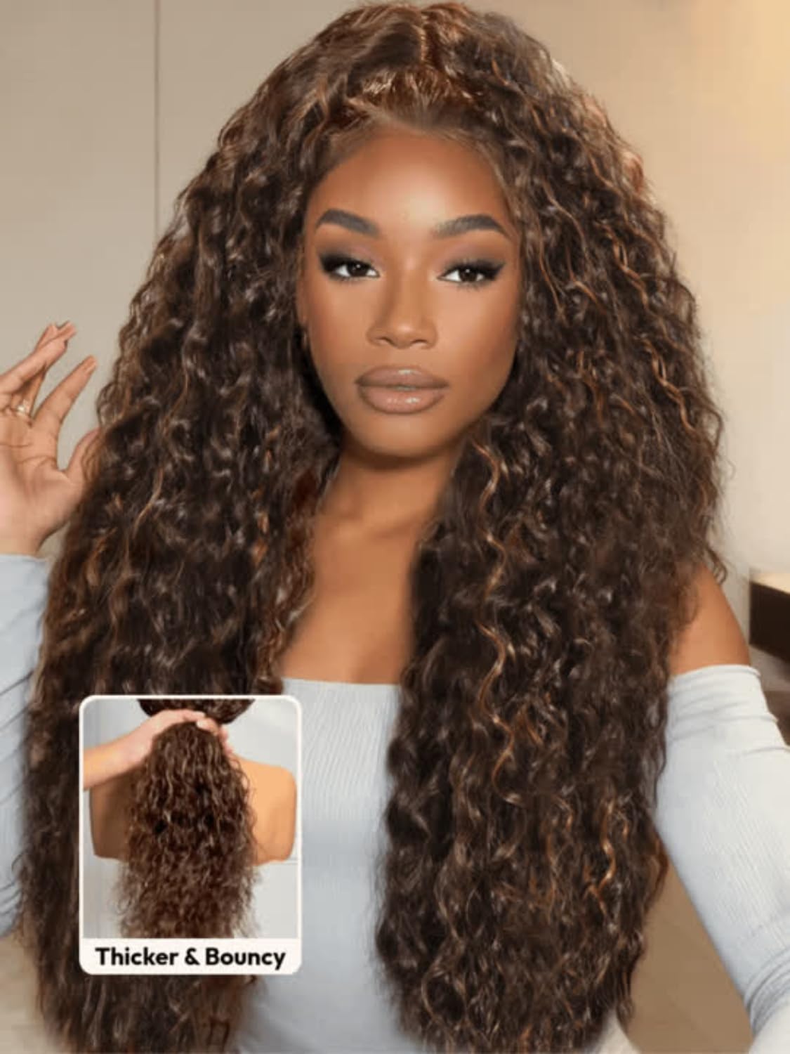 The Nadula Golden Brown Highlight Water Wave Wig is a game-changer when it comes to achieving a natural and stylish look. The pre-plucked hairline and invisible knots make it look like your own hair, while the 150% density strikes the perfect balance for a realistic appearance. The wig is easy to style and maintain, and the golden brown highlights add a touch of warmth and dimension to the overall look. Whether you’re a beginner or a seasoned wig wearer, this wig is sure to impress.