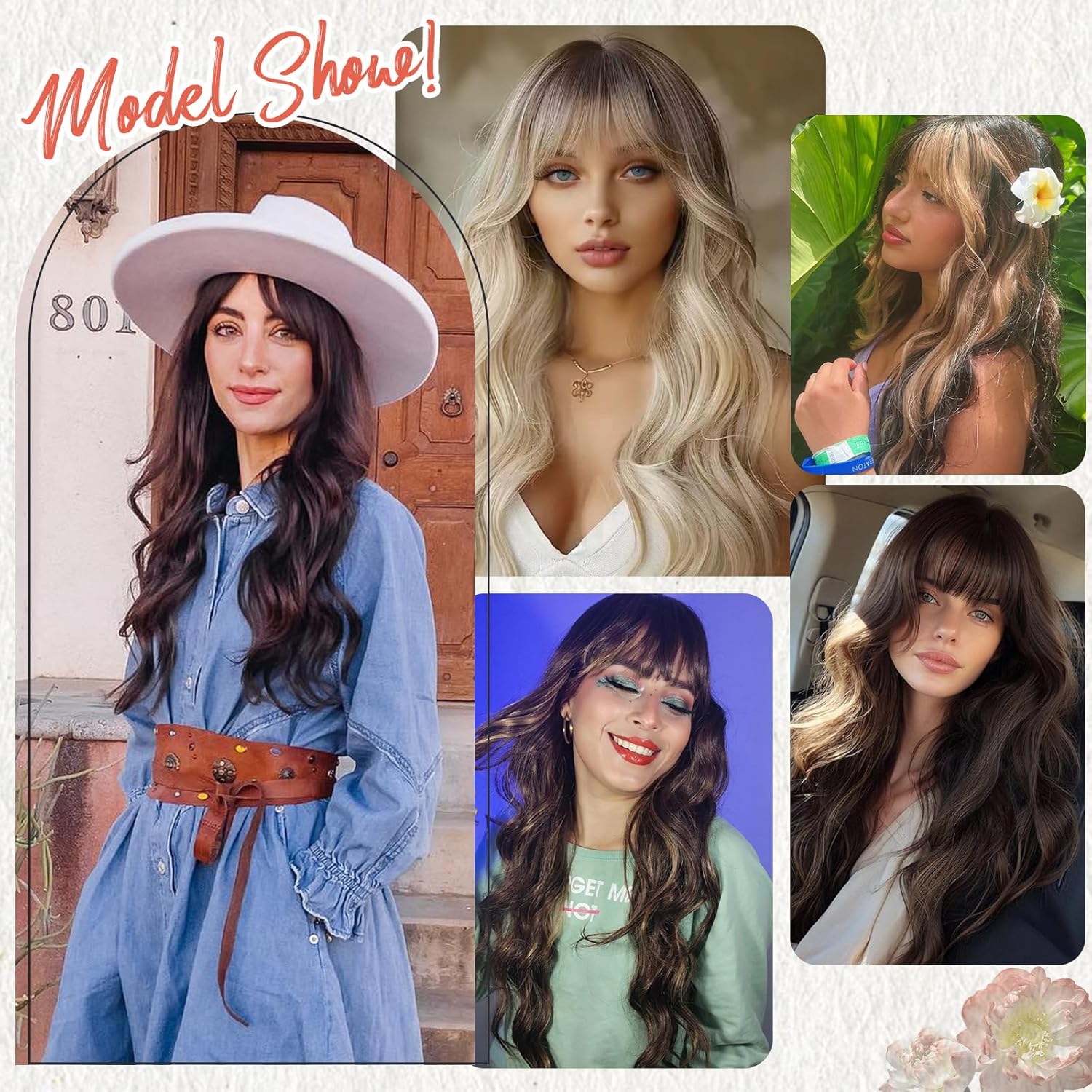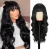 Fraud Blocker NOSTALGIA Black Wig with Bangs for Women Long Curly Wavy Wig Synthetic Curly Natural Black Replacement Wigs for Daily Party Use | Wigsretail44.com