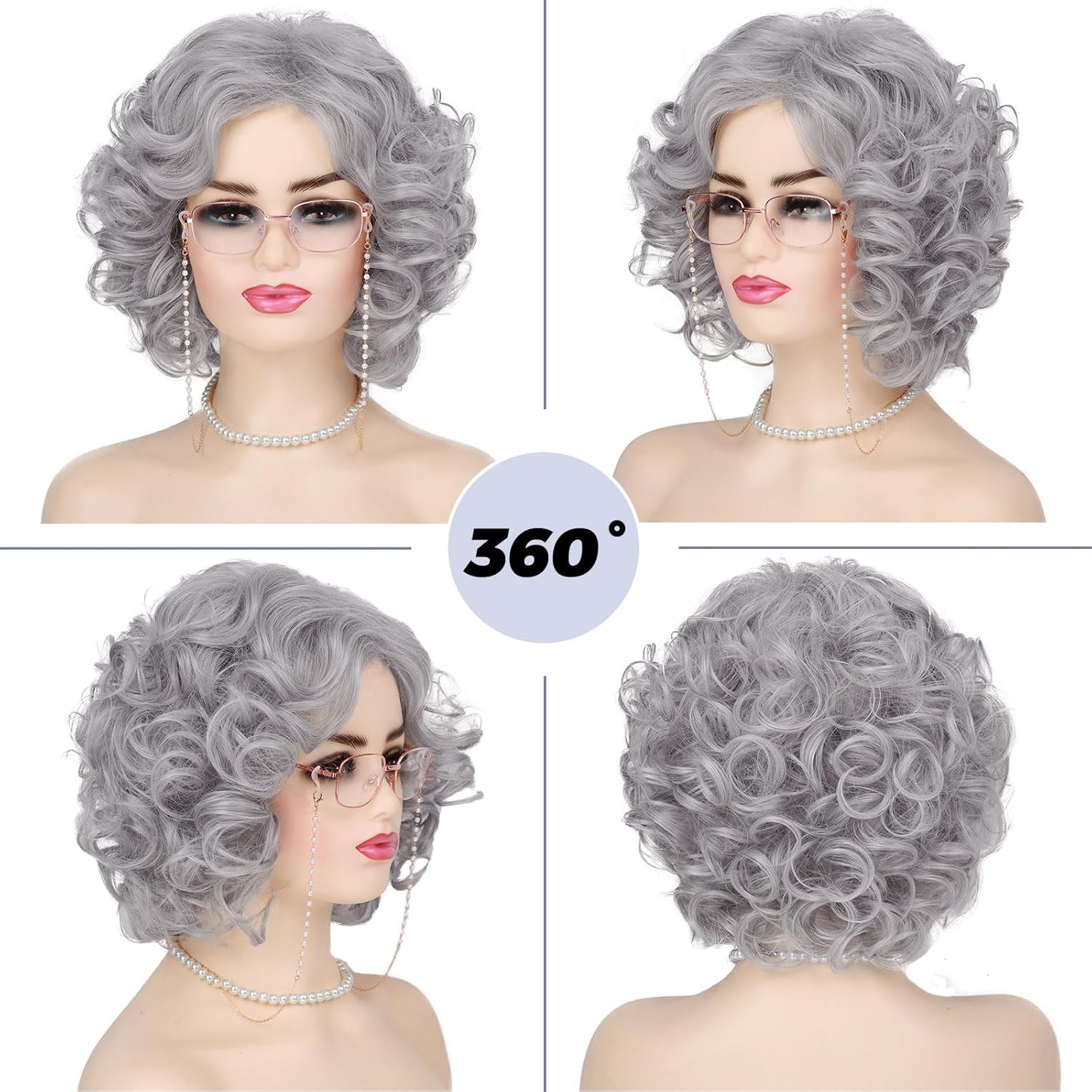 – Includes: 1pc Old Lady Grey Wig, 1pc Pearl Necklace, 1pc Eyeglasses Chain, 1pc Granny Glasses, 1pc Wig cap