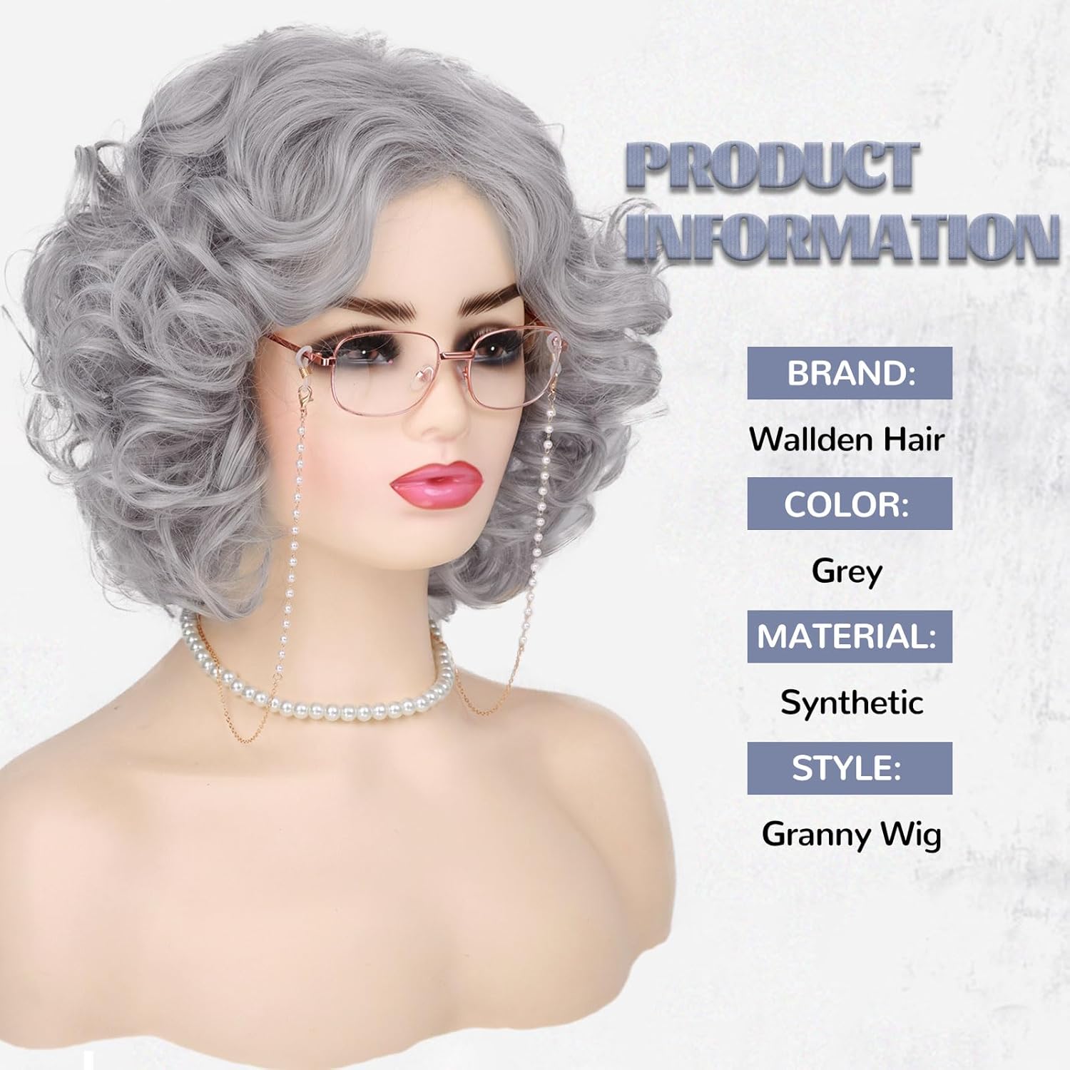 Transform into a classic old lady with the Old Lady Costume Wig Set by Wallden Hair. This realistic grandma impersonation kit includes everything you need to complete your look, from the gray wig to the pearl necklace and granny glasses. Perfect for costume parties, cosplay events, and Halloween, this set is sure to add a touch of fun and nostalgia to your outfit.