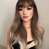 24 Inch Long Synthetic Wig with Bangs: Modern Style for Dry, Thick, Long Hair