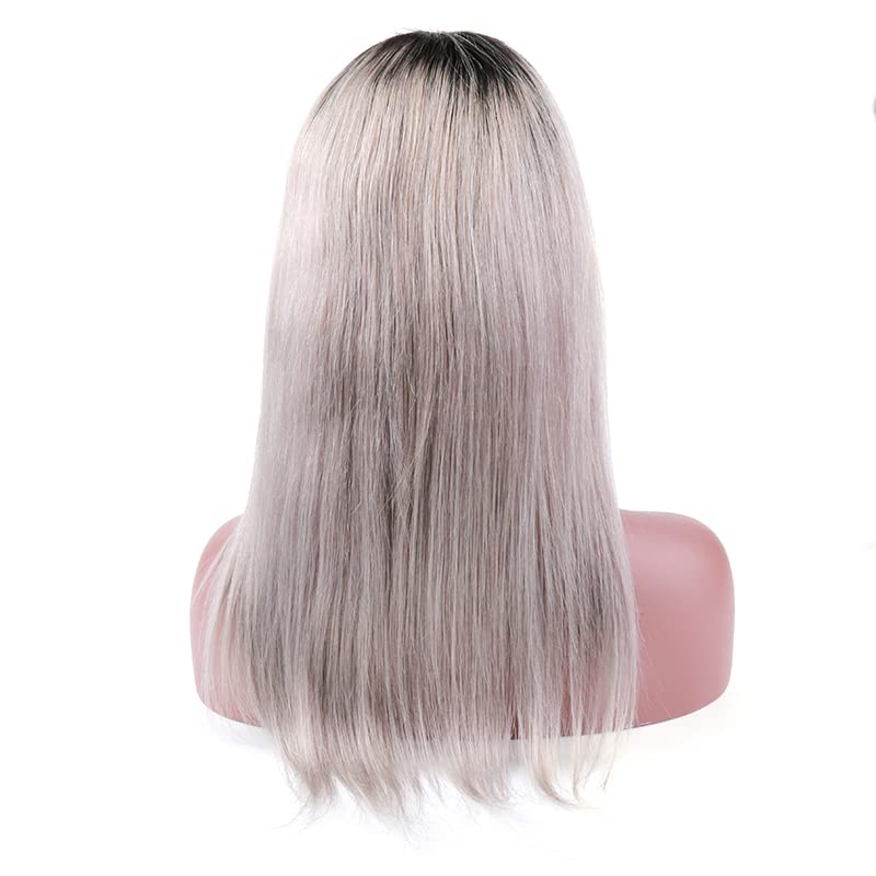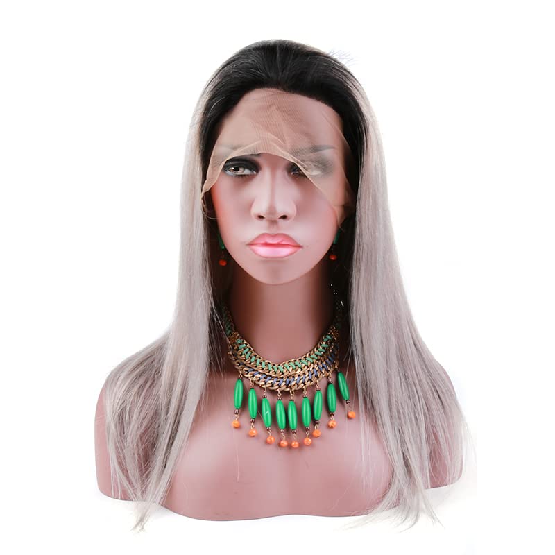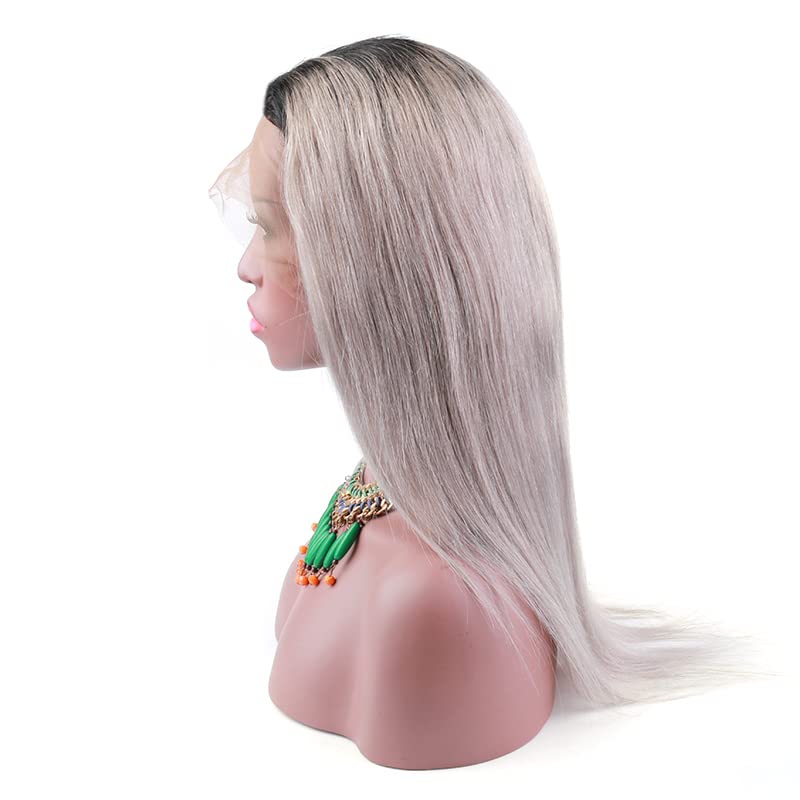 Fraud Blocker Ombre Full Lace Wigs Human Hair with Adjustable Strap Straight #1B/grey Dark Roots Wigs with Baby Hair Pre Plucked Bleached Knots 12 inch for Black Women Free Part | Wigsretail44.com