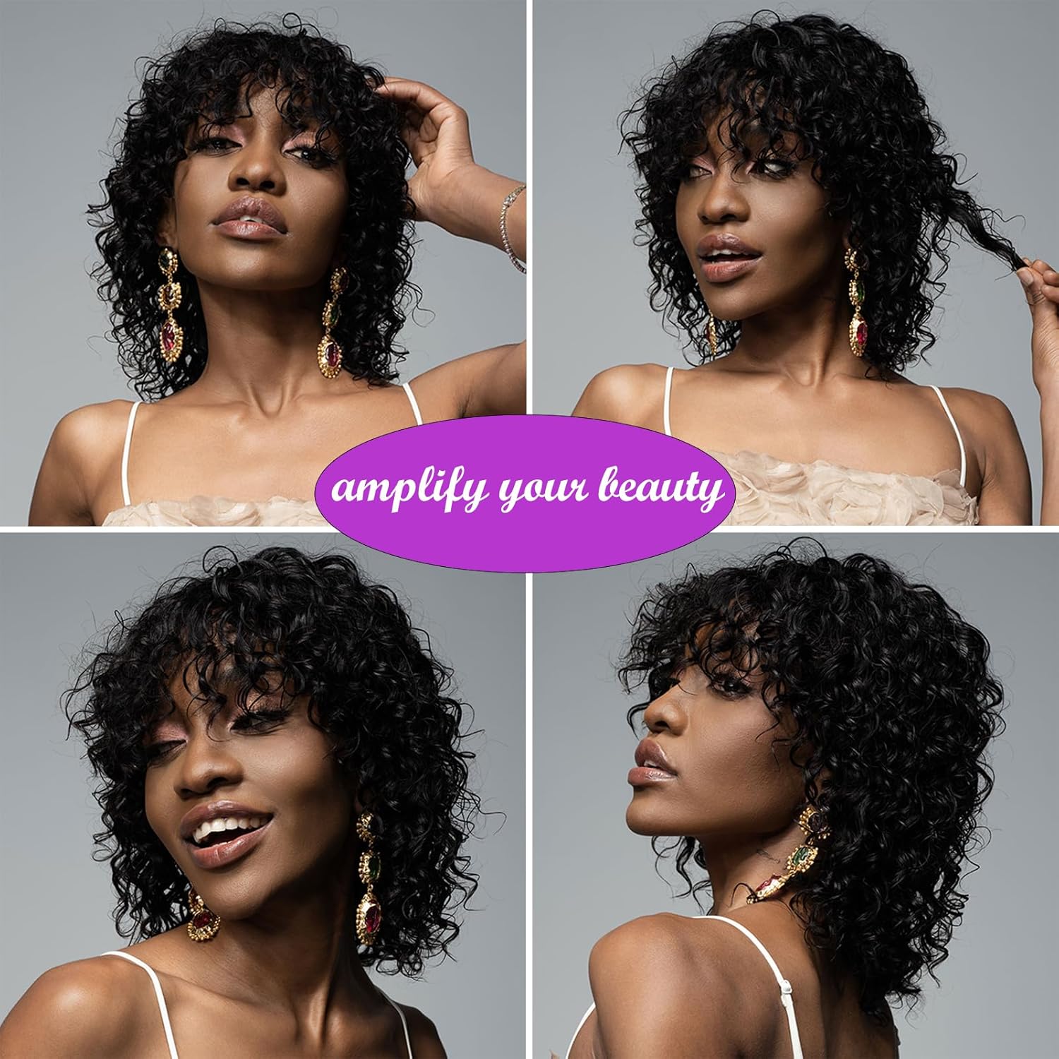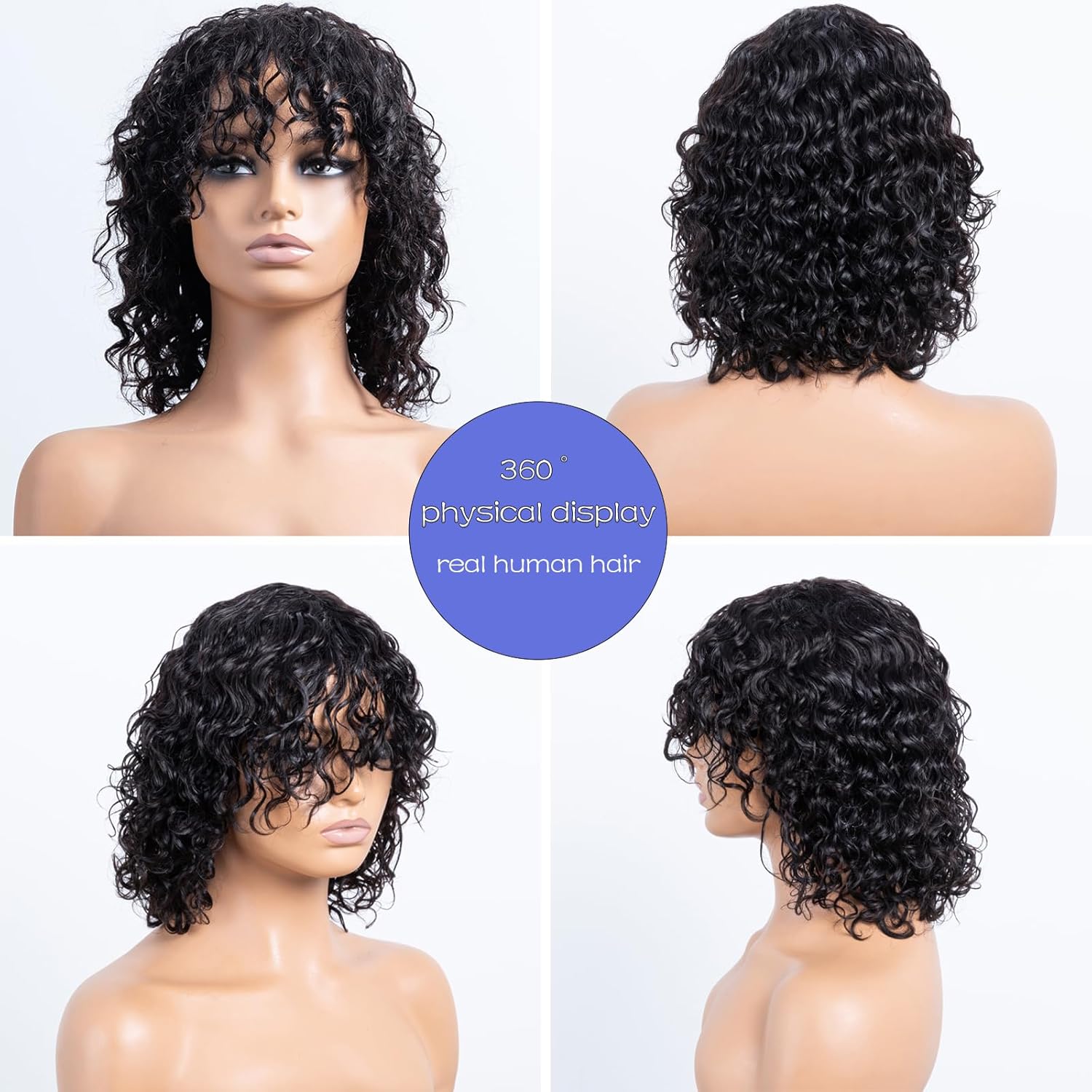 – Glueless wig: Machine-made water wave wig for easy wear and removal