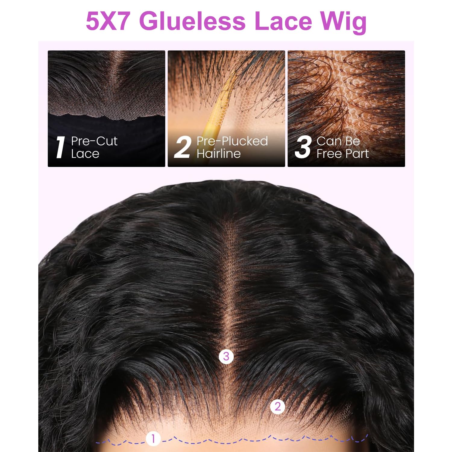 - Lace Size: 7×5 pre-cut lace with middle part, pre-plucked natural hairline