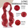 Fraud Blocker Probeauty Mermaid Wig Long Red Curly Body Wave Wig Halloween Cosplay Costume Wigs for Women+Wig Cap | Wigsretail44.com