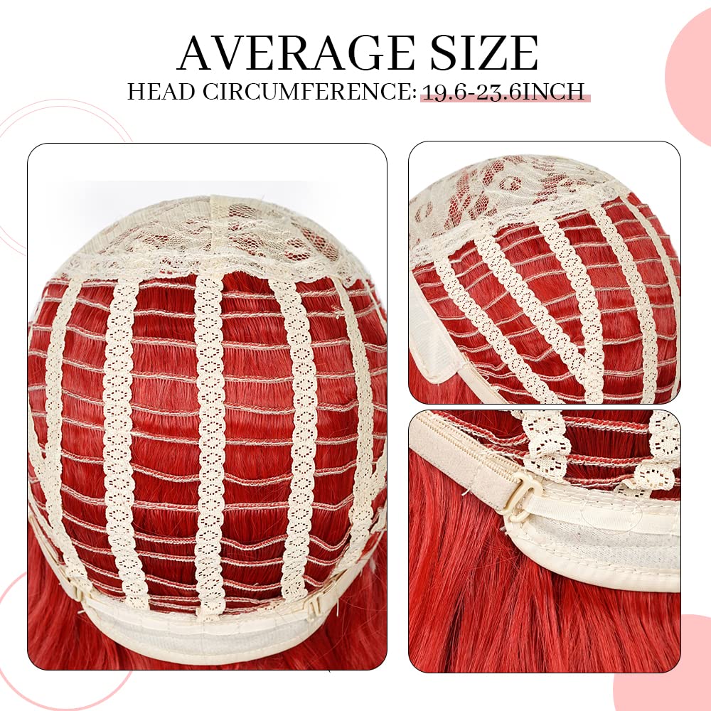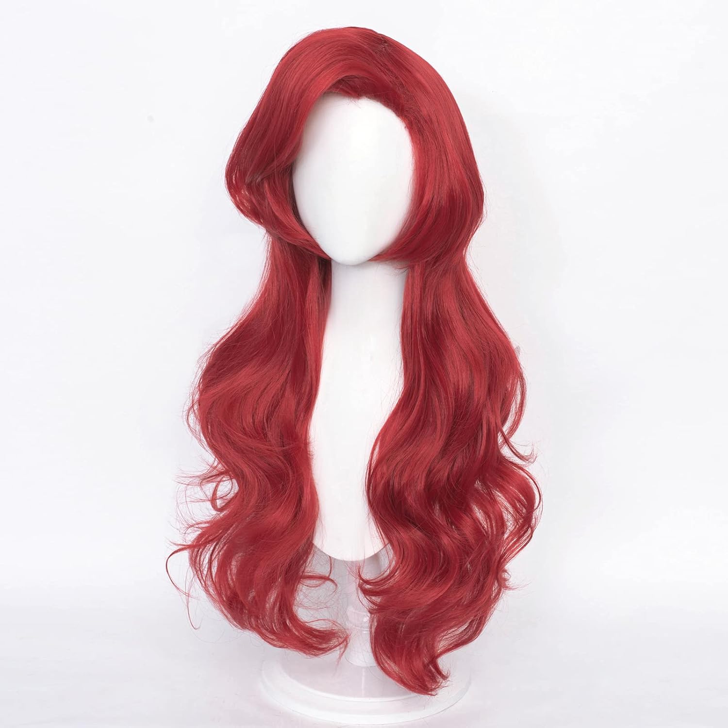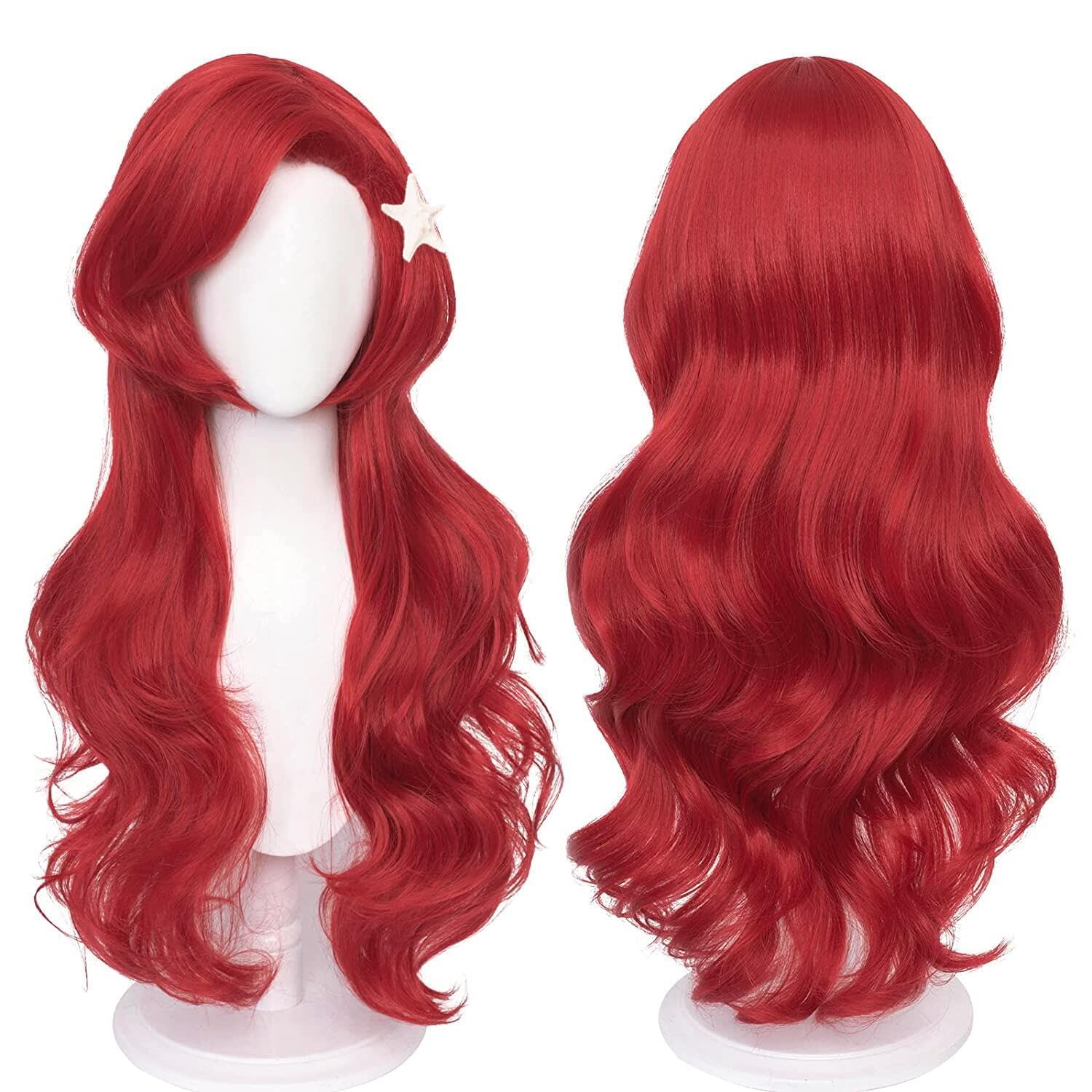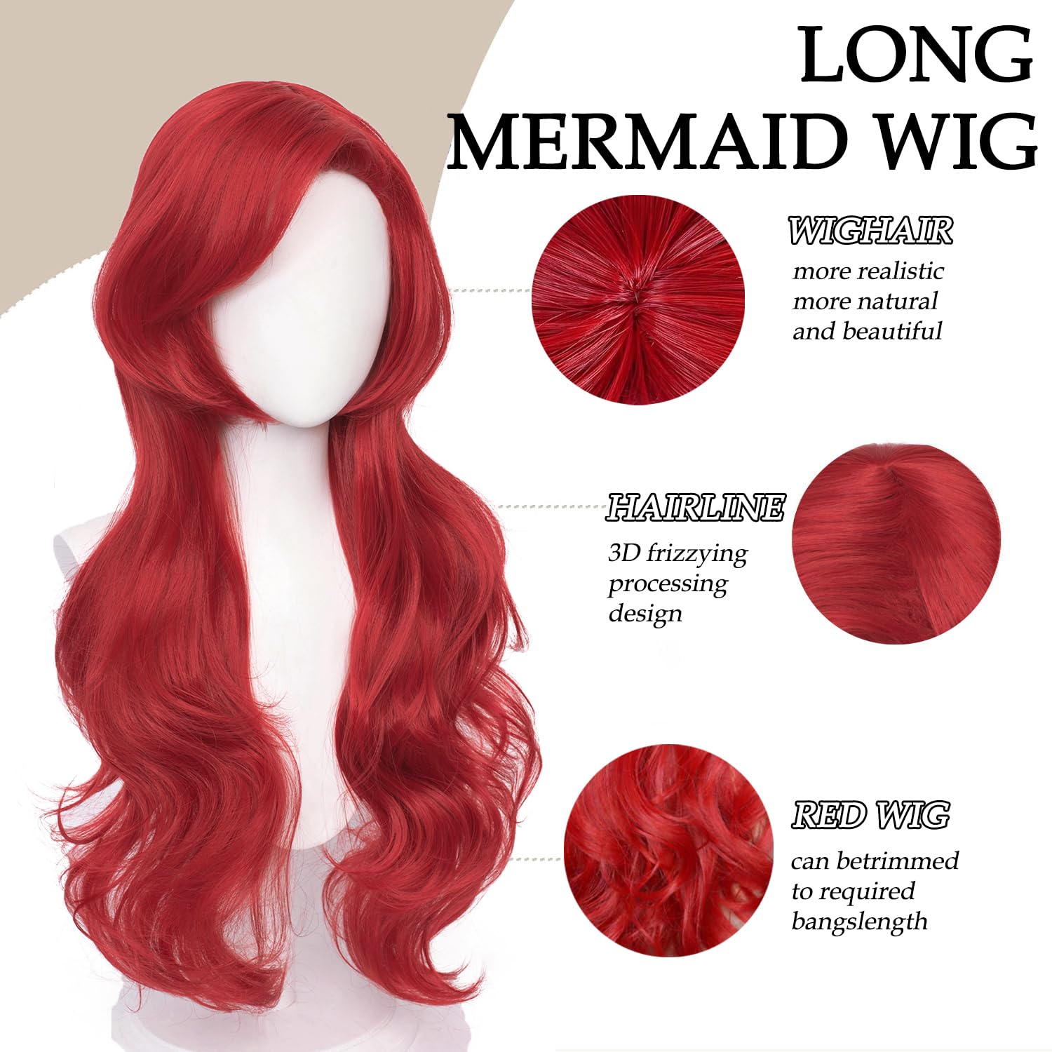 Probeauty Mermaid Wig Long Red Curly Body Wave Wig Halloween Cosplay Costume Wigs for Women+Wig Cap