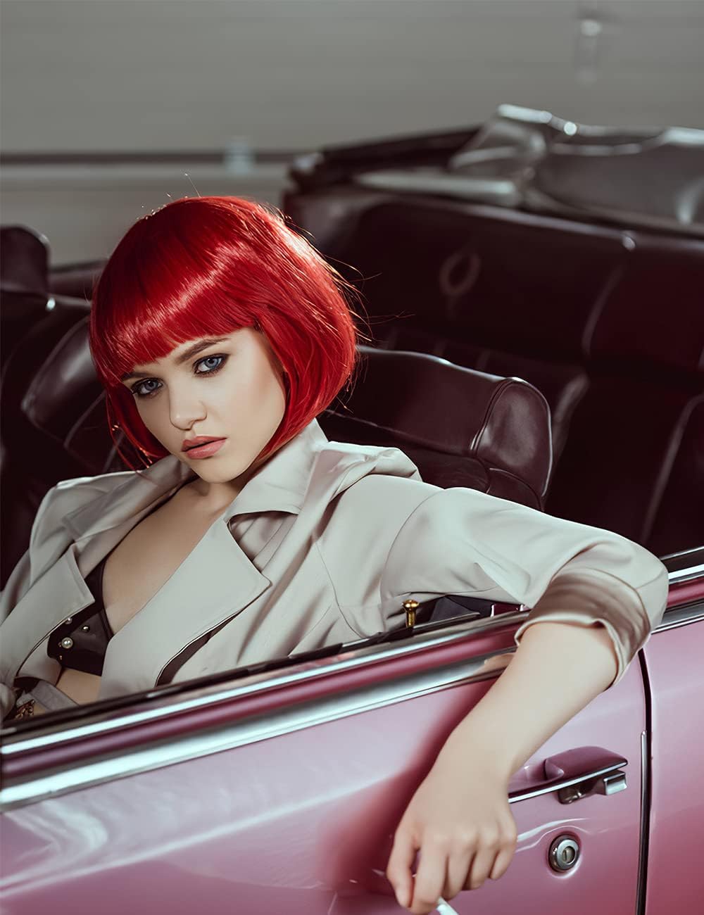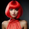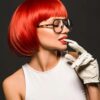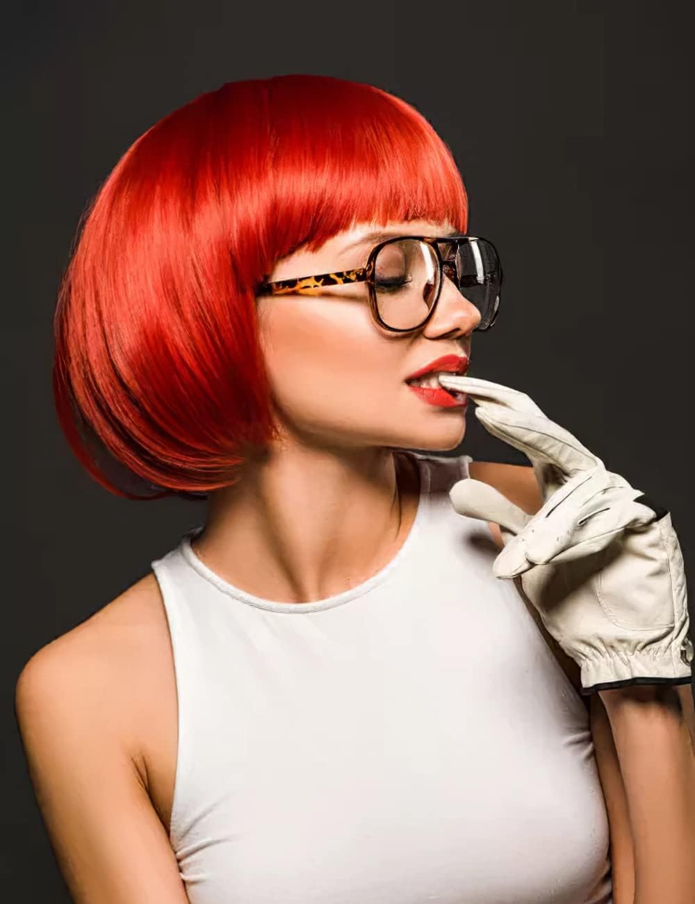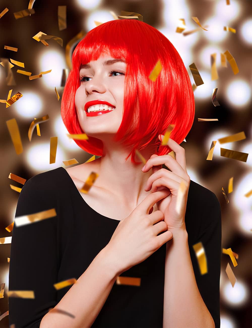 Fraud Blocker Red Wig and Party Sunglasses, Wig for Women, Short Bob Wigs with Bangs, Bright Red Wig with Neon Glasses Red Wig for Women (Red) | Wigsretail44.com
