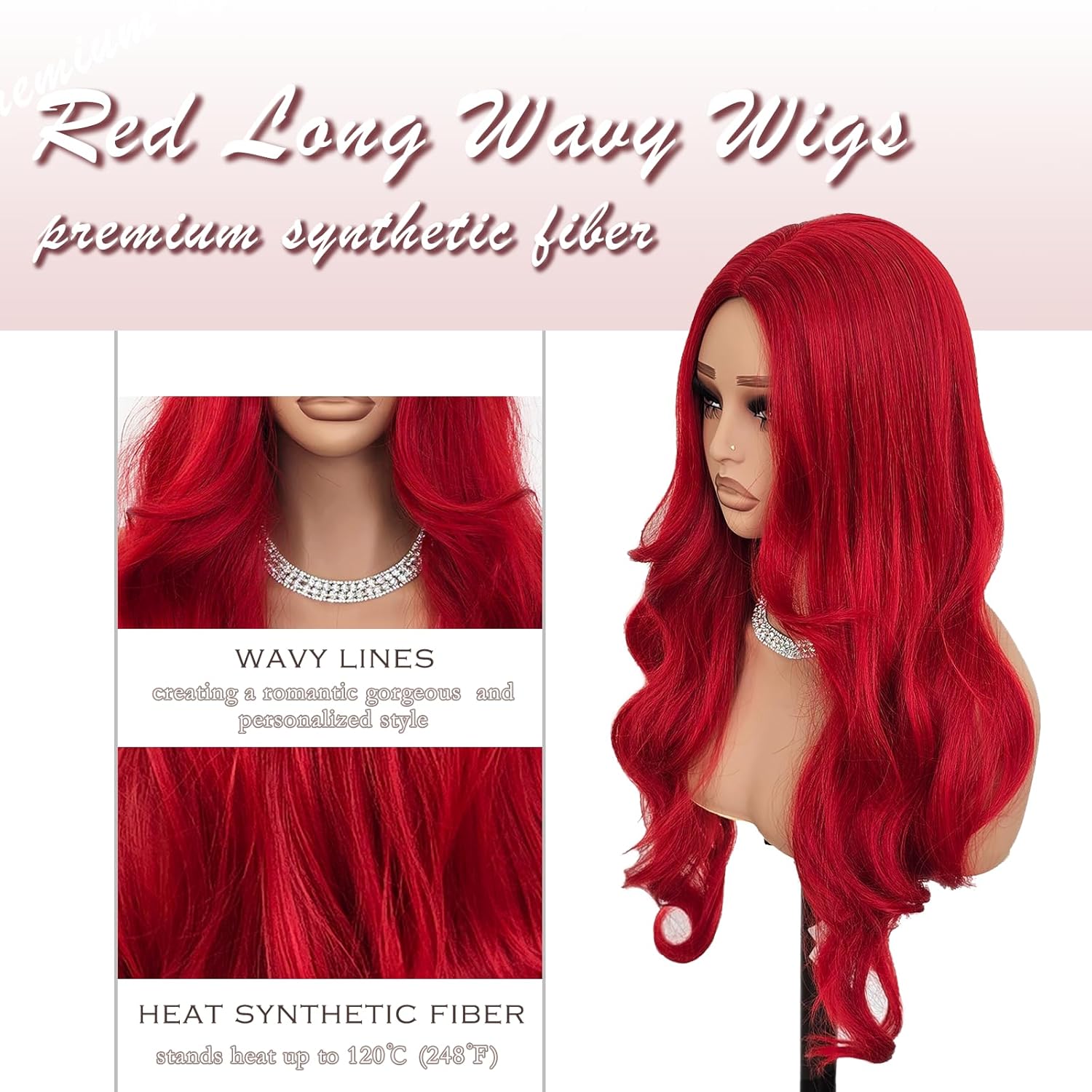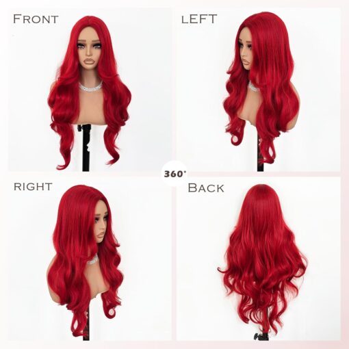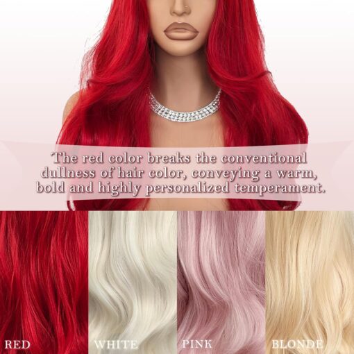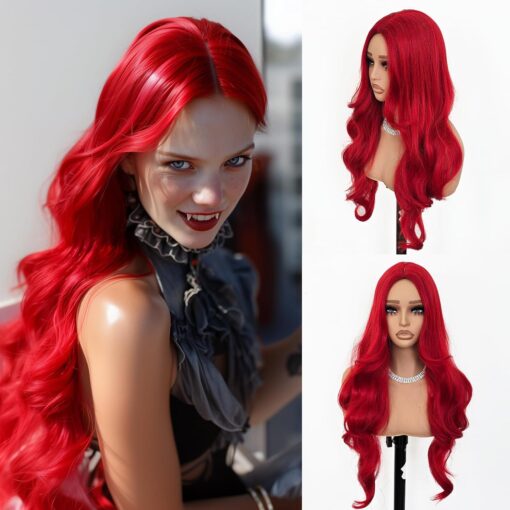 Fraud Blocker Red Wigs for Women Long Wavy Wigs Red 28 inch Middle Part Curly Wig Cosplay Natural Looking Synthetic Wigs Long Red Wig Hair Replacement Wigs for Daily Party Costume Use | Wigsretail44.com