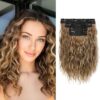REECHO Clip in Hair Extensions – 4PCS 12″ Short Curly Wavy Brown Hair Extensions with Invisible Lace Weft and Highlights