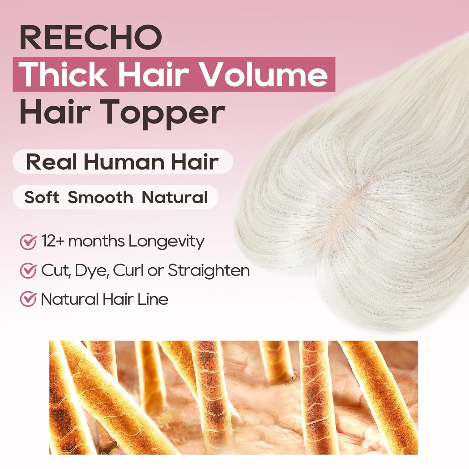 REECHO human hair toppers are perfect for women and girls with thinning hair, bald spots, gray roots, or high and wide hairlines. Whether you need a quick fix for daily wear, special occasions, or just want to experiment with different hairstyles, these toppers are suitable for all.