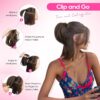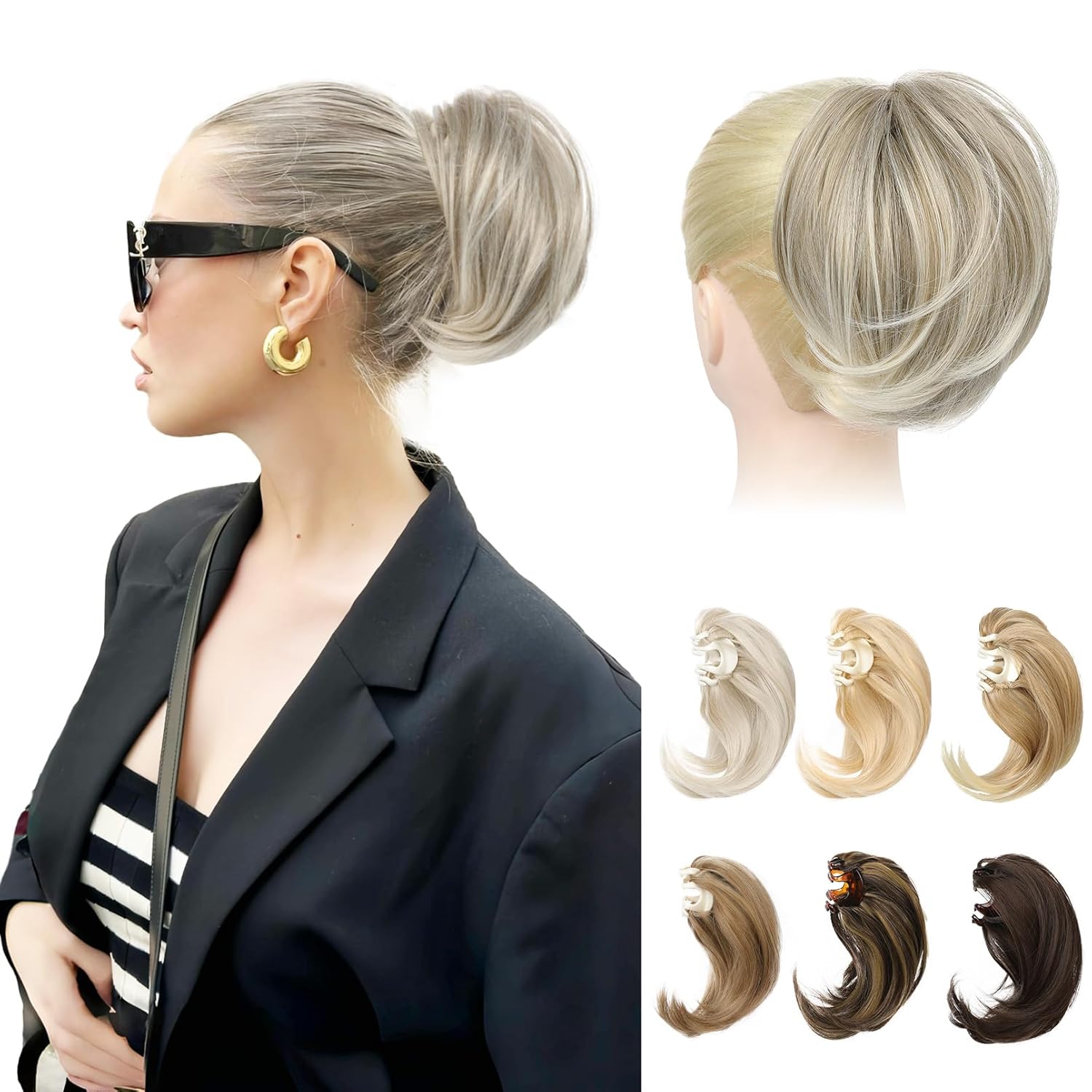 REECHO Ponytail Extension, 7″ Mini Claw Clip in Ponytail Hair Extensions Short Natural Straight Wavy Messy Hair Bun Hair Pieces for Women with Short Thin Hair – Ash Brown with White Ends