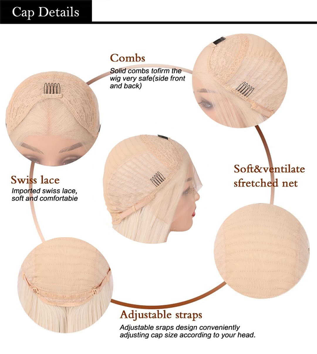 - Cap Size: Medium with adjustable straps and 3 combs