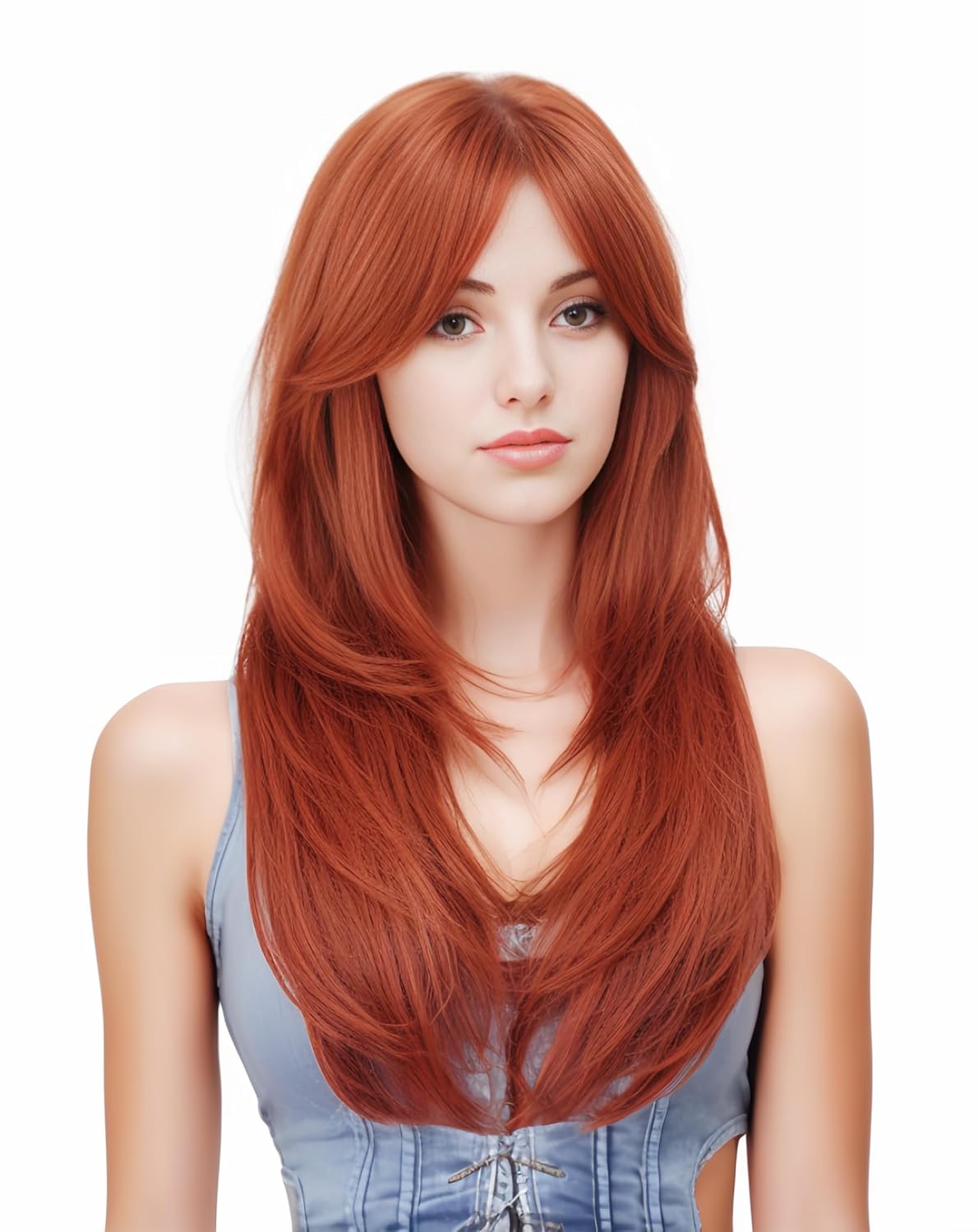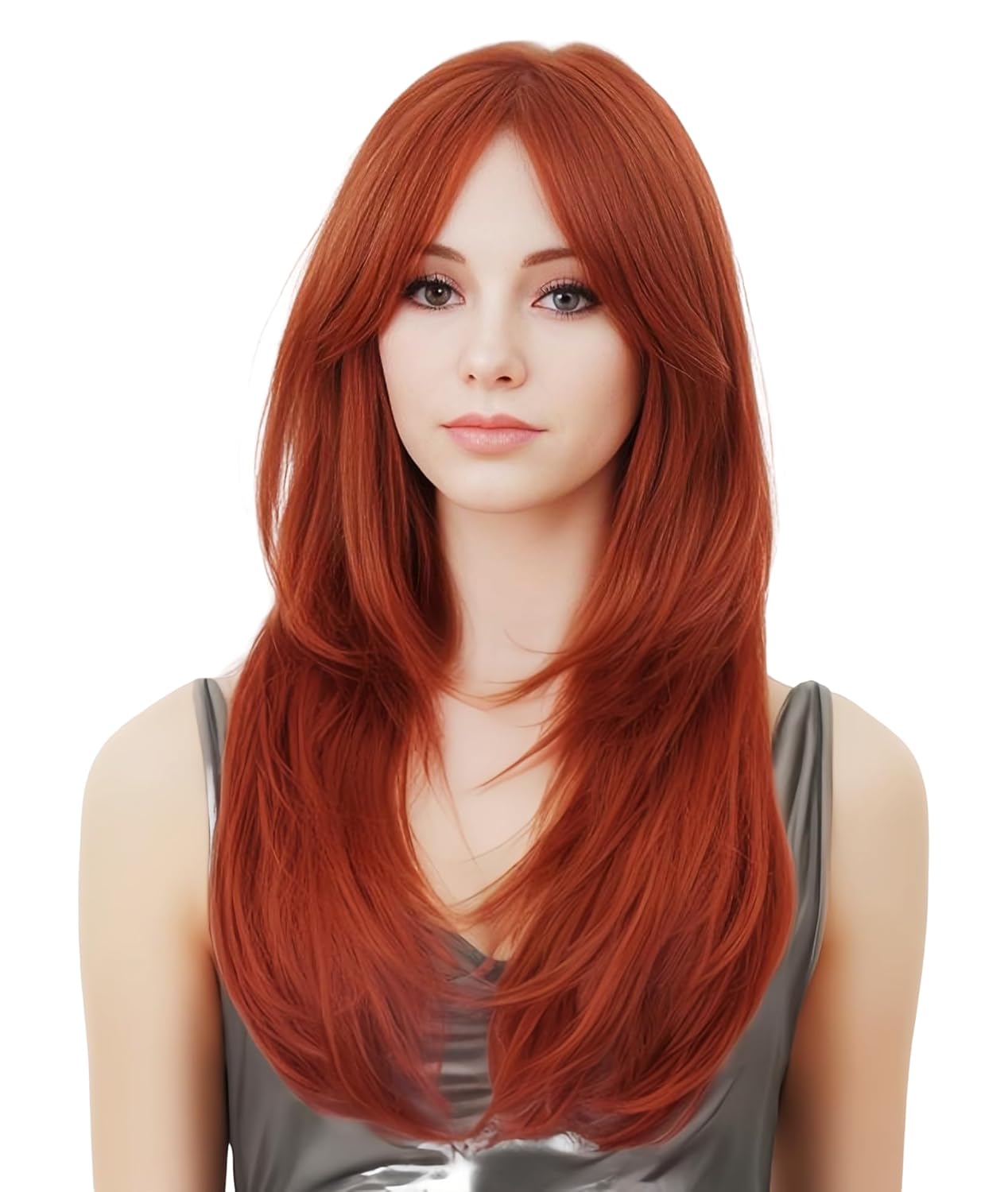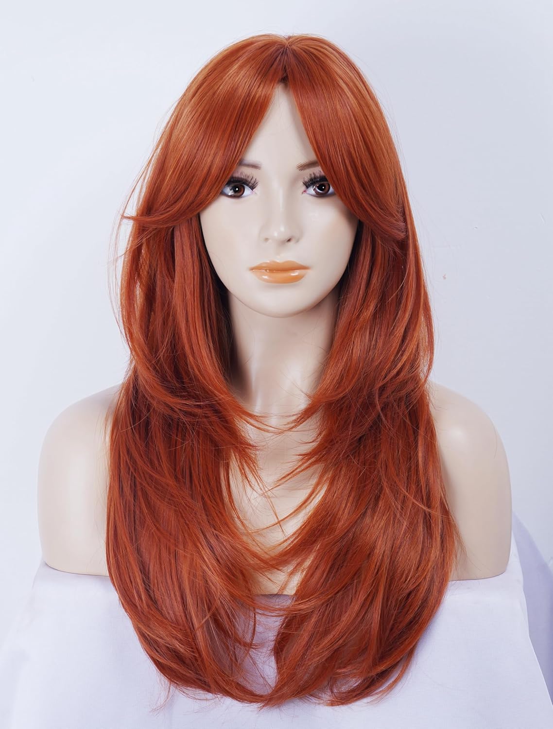 - Design: Long wavy auburn red wig designed by professional hairstylists. Looks natural and feels comfortable.