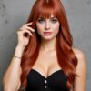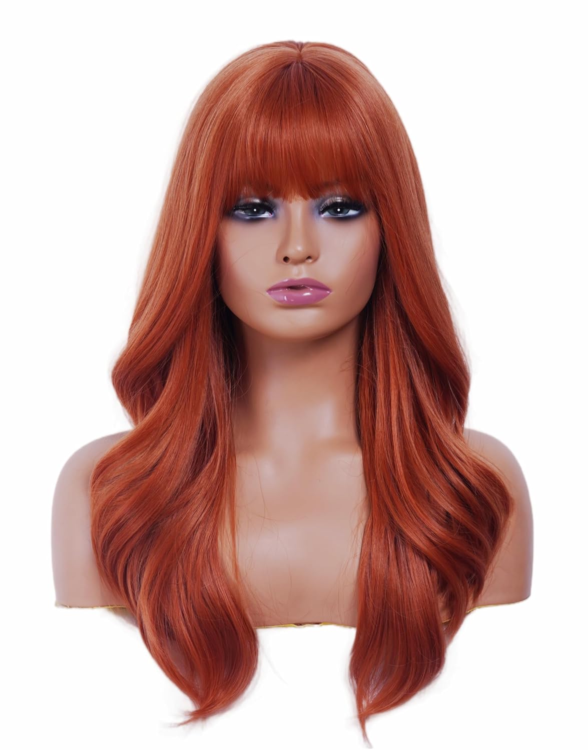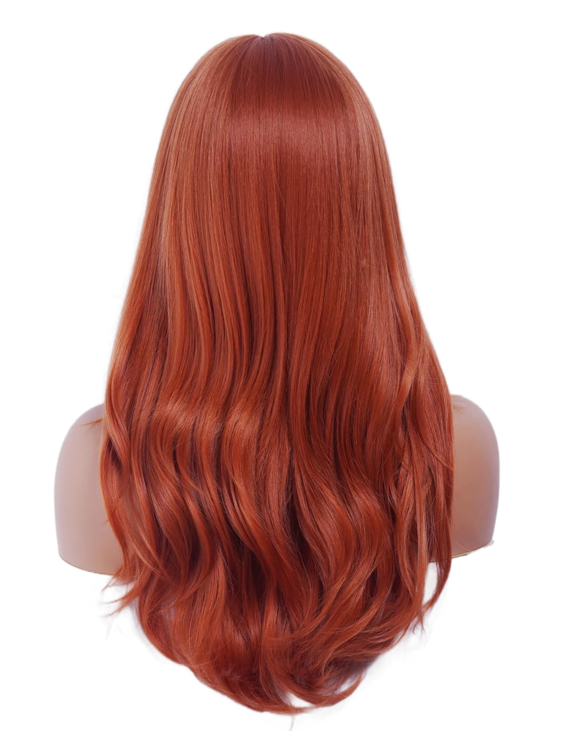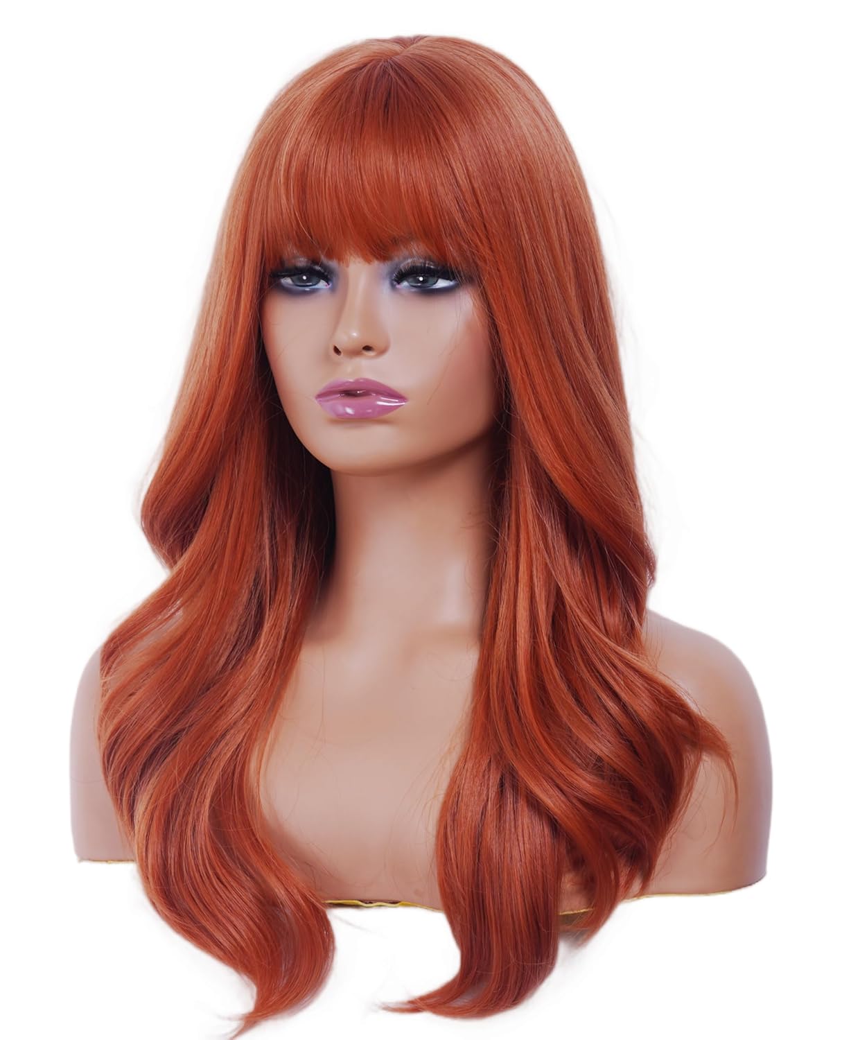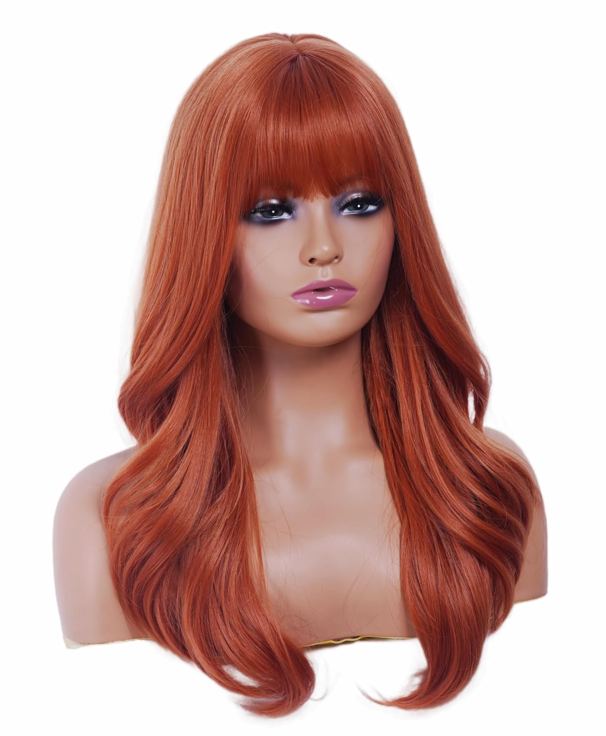 Fraud Blocker Rugelyss Long Wavy Auburn Wigs for Women, 20 Inches Copper Red Wig with Bangs Synthetic Ginger Hair Wig for Daily Party | Wigsretail44.com