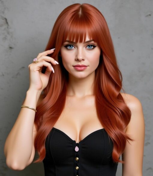 Fraud Blocker Rugelyss Long Wavy Auburn Wigs for Women, 20 Inches Copper Red Wig with Bangs Synthetic Ginger Hair Wig for Daily Party | Wigsretail44.com