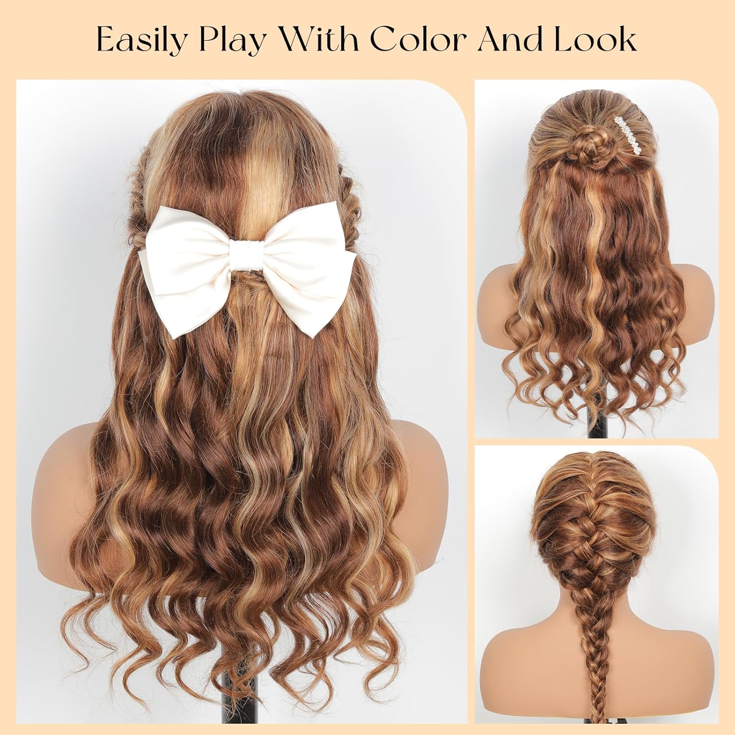 Ruiyu Ombre Highlight Human Hair Wig with Bangs 2×4 HD Lace Front Closure Body Wave Wear and Go Glueless Highlights 4/27 Honey Blonde Brown Colored 100% Human Hair Wigs for Black Women 16 Inch