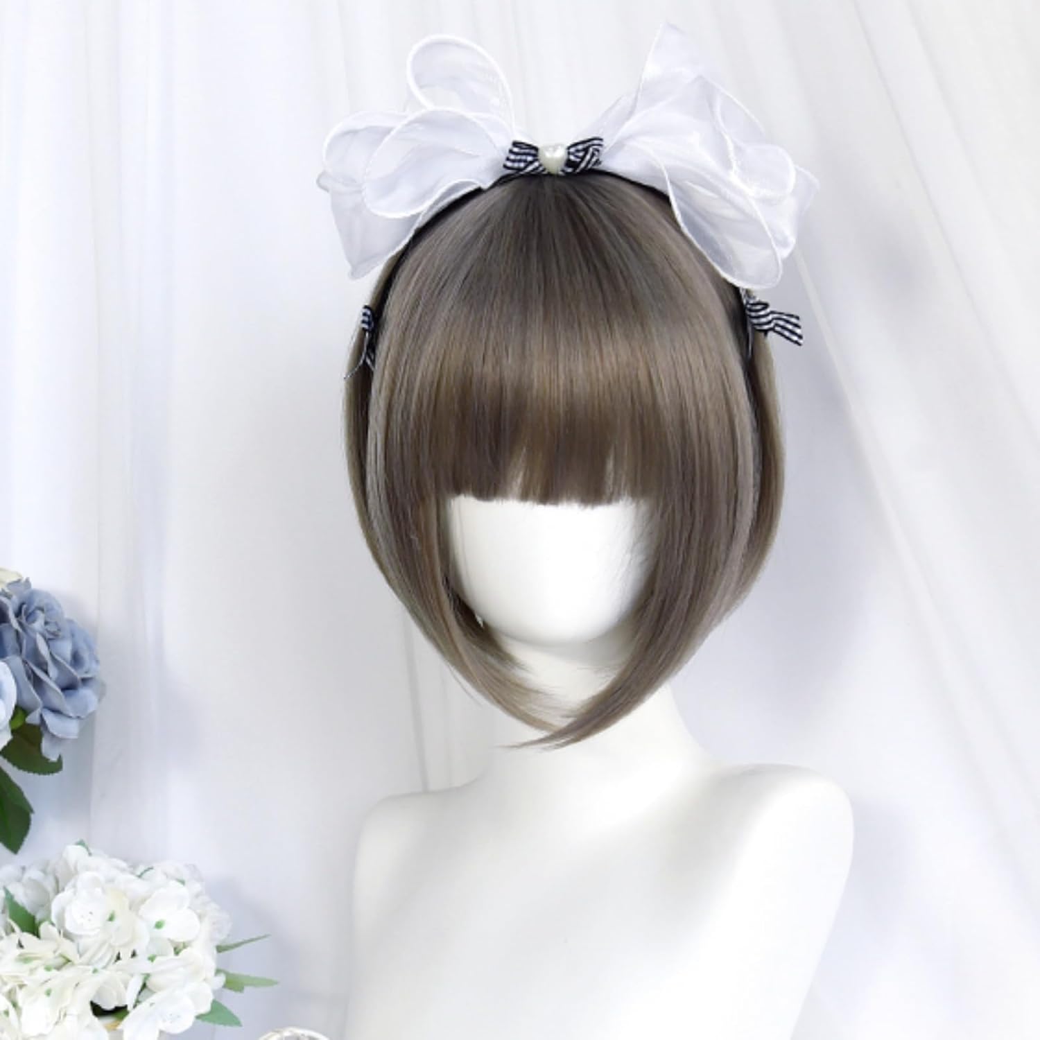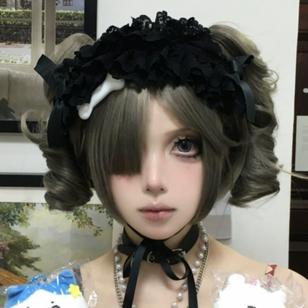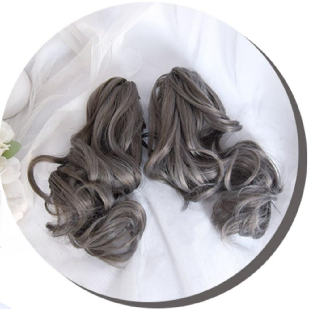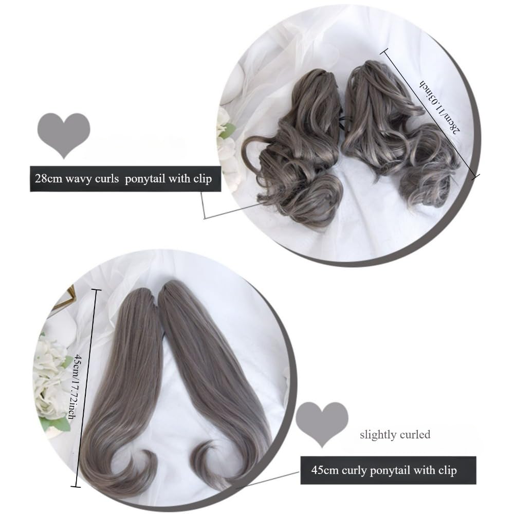 Fraud Blocker SCORRO Short Bob Wig with 2 Removable Claw Clip Pigtails, Gray Ponytails Wig, Cute Lolita Wig Cosplay Wigs for Women (Grey-Water wave curly) | Wigsretail44.com