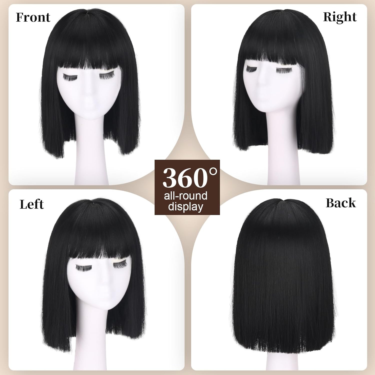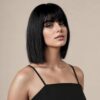 – Straight bob style with bangs that can be trimmed