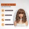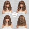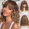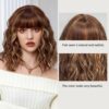 Fraud Blocker Short Brown Blonde Wig,Shoulder Length Bob Curly Wavy Ombre Brown Wig With Bangs for Women, Charming Heat-resistant Synthetic Hair Wigs for Date Daily Use | Wigsretail44.com