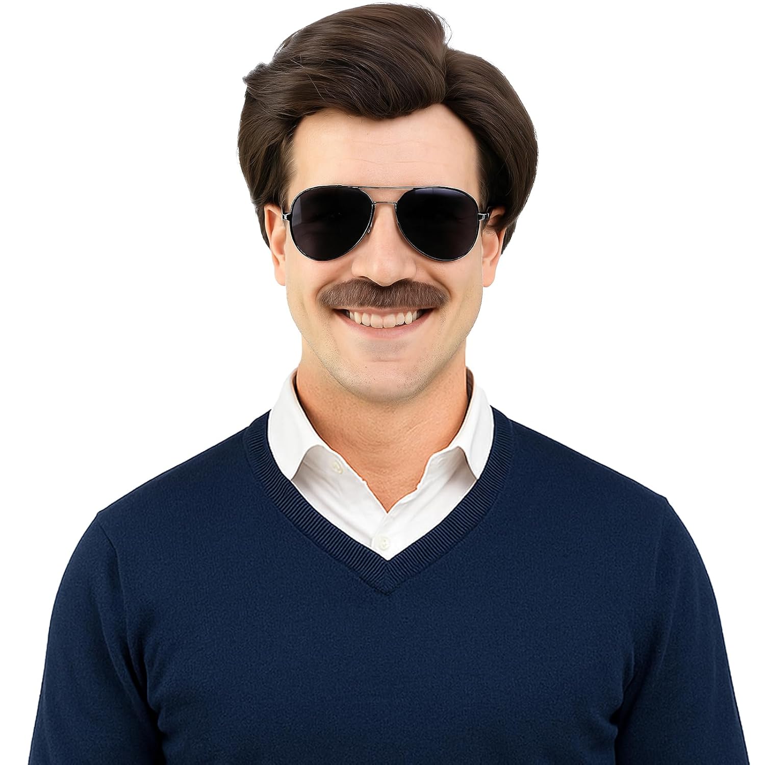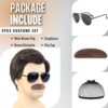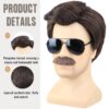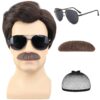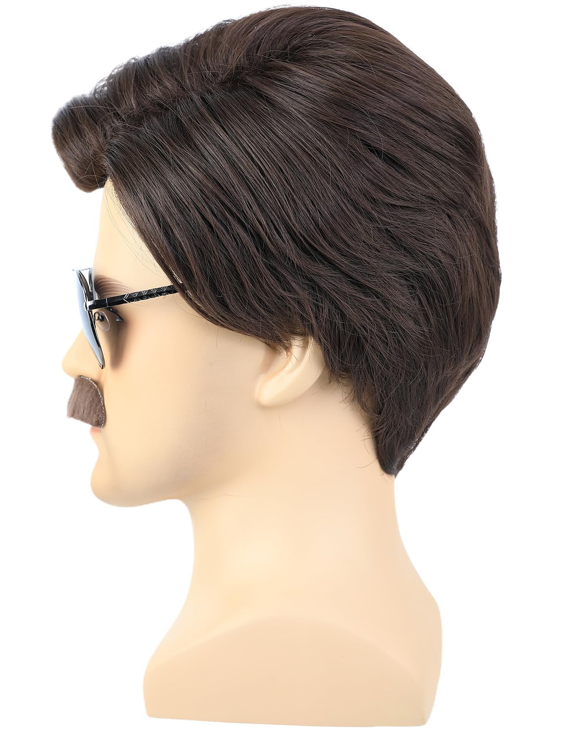 Short Brown Men Wig with Msutache and Sunglasses for 70s 80s Costume Cosplay Halloween Party