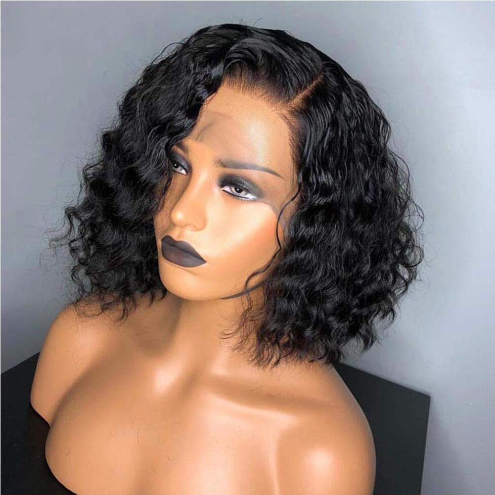 Fraud Blocker Short Curly Bob Full Lace Wigs for Black Women 150% Density Natural Wavy Curly Full Lace Front Wig Virgin Human Hair Wigs with Baby Hair (14 inch, full lace wig) | Wigsretail44.com