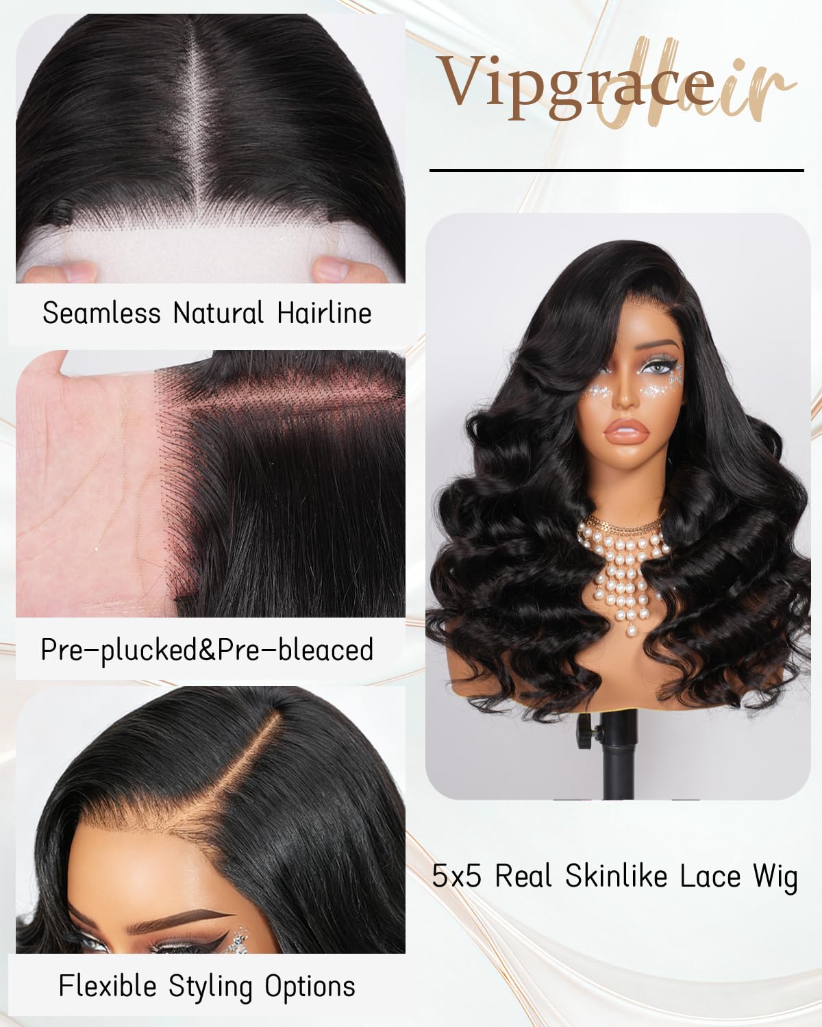 Overall, the VIPGRACE 5×5 HD Lace Closure Wig is a top-notch choice for anyone looking for a natural and versatile wig. With its high-density design, glueless installation, and body wave texture, this wig offers a glamorous yet practical style for every occasion. Check it out on Amazon today and elevate your hair game with VIPGRACE!