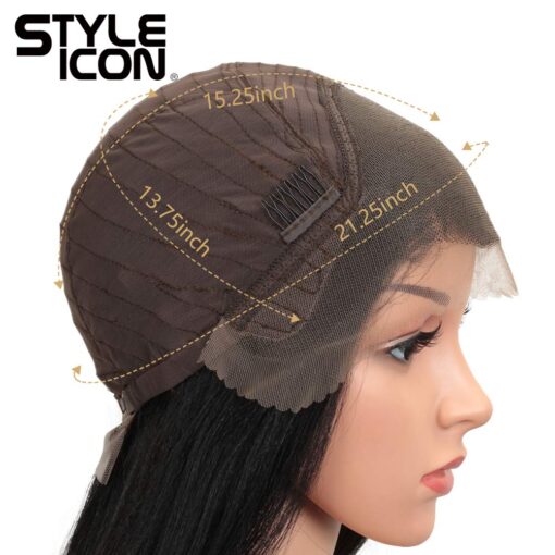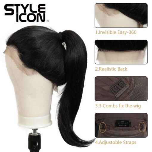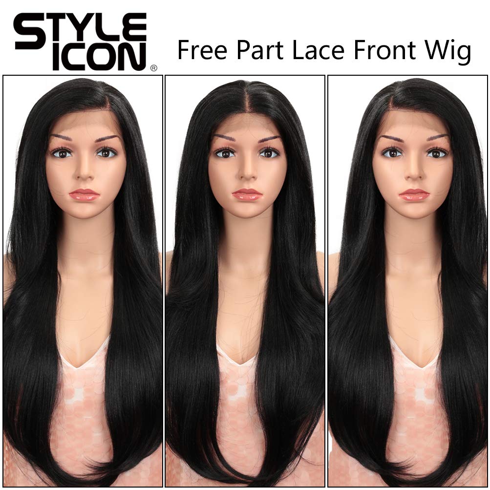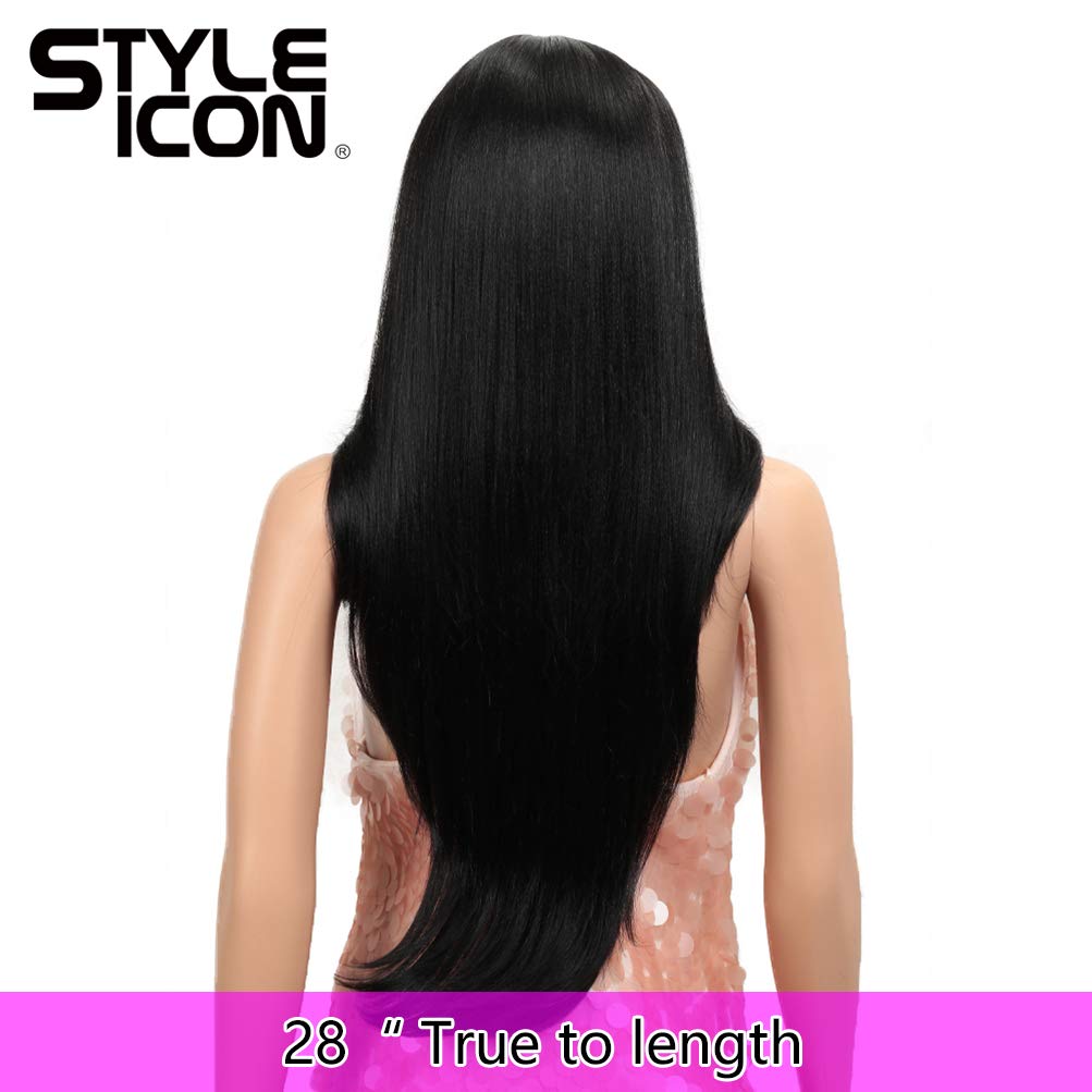 Style Icon Easy-360 Lace Wigs 28″ Free Part Lace Frontal Wigs Long Straight Wig Black Synthetic Wig(28″, 1B)