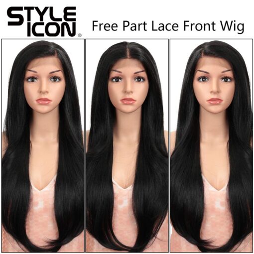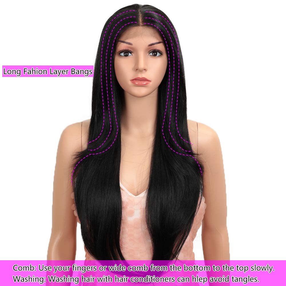 Fraud Blocker Style Icon Easy-360 Lace Wigs 28″ Free Part Lace Frontal Wigs Long Straight Wig Black Synthetic Wig(28″, 1B) | Wigsretail44.com