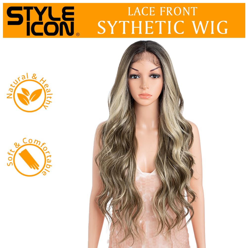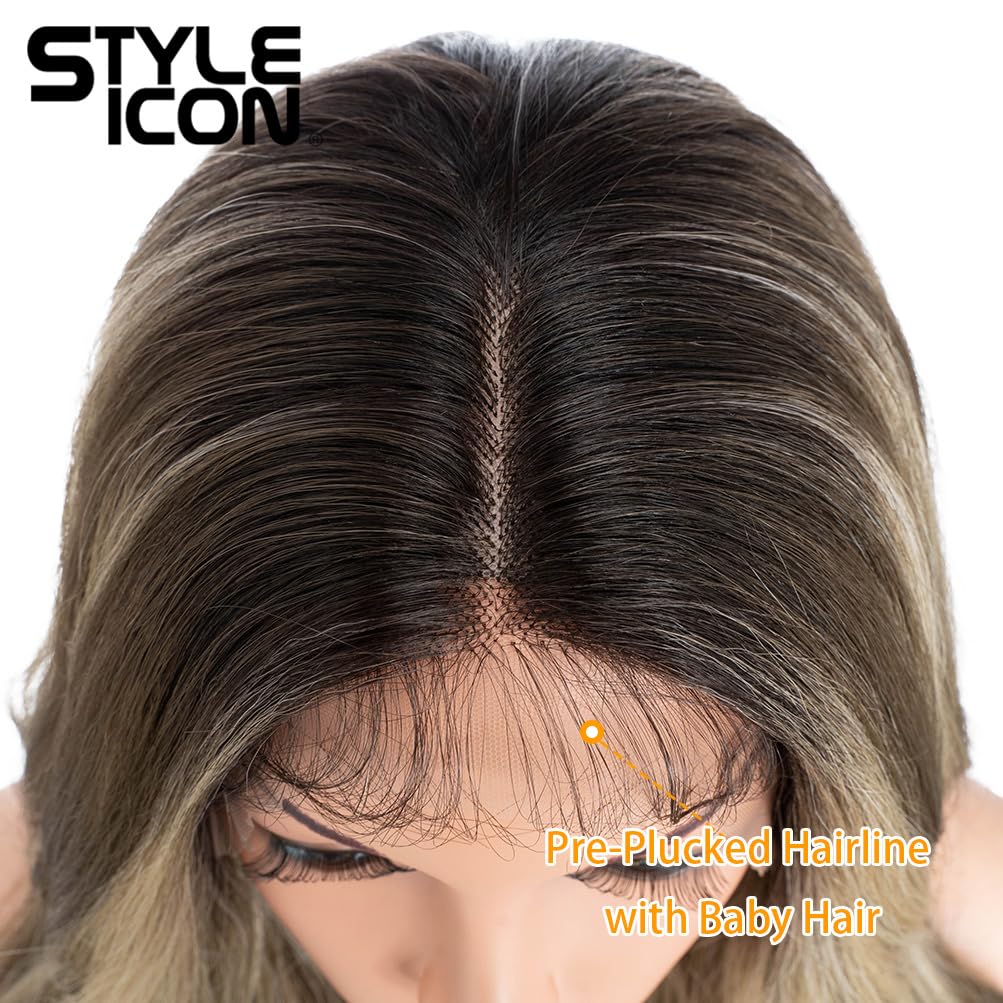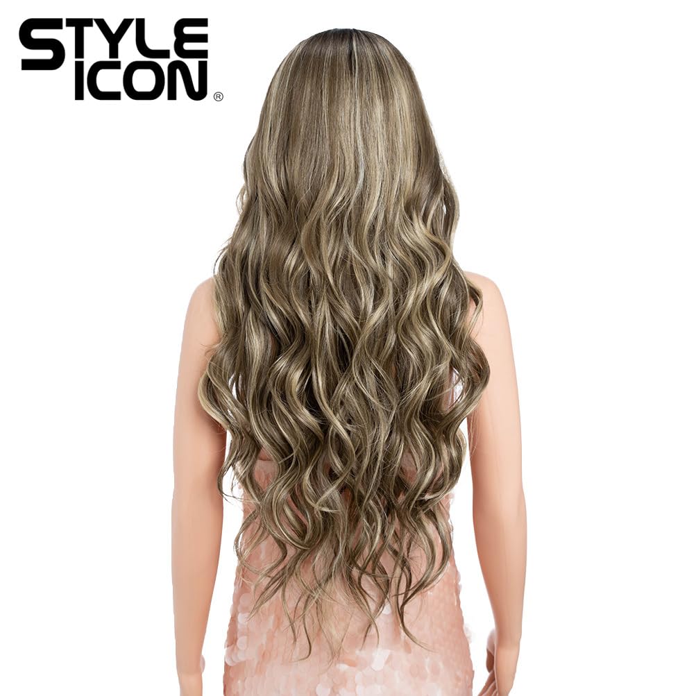 Style Icon Long Wavy Wig for Women 28” Middle Part Curly Wavy Wig Natural Looking Synthetic Heat Resistant Fiber Wig for Daily Party Use (28 Inches, NTSN4/UN9/12R)